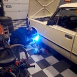 Wieczorową pora pojechałem syreną do Pawła, aby odebrać pomalowane piecowo felgi od Walusia. Waluś stał na kobyłkach które to musiałem zwolnić, aby postawić na nich fiata. Felgi wyszły cudnie. Grzanek pomógł je założyć (wartburg dostał nowe opony barum, które to z kolei polecił Karol www.gratywołomin.wordprecs.com )i mogliśmy zając się sanitarką.