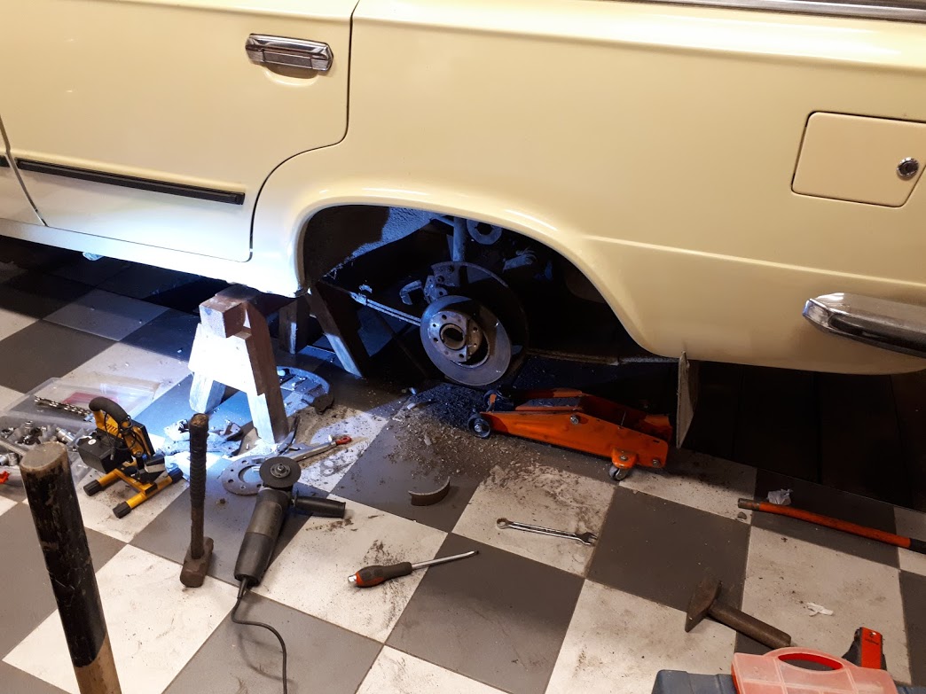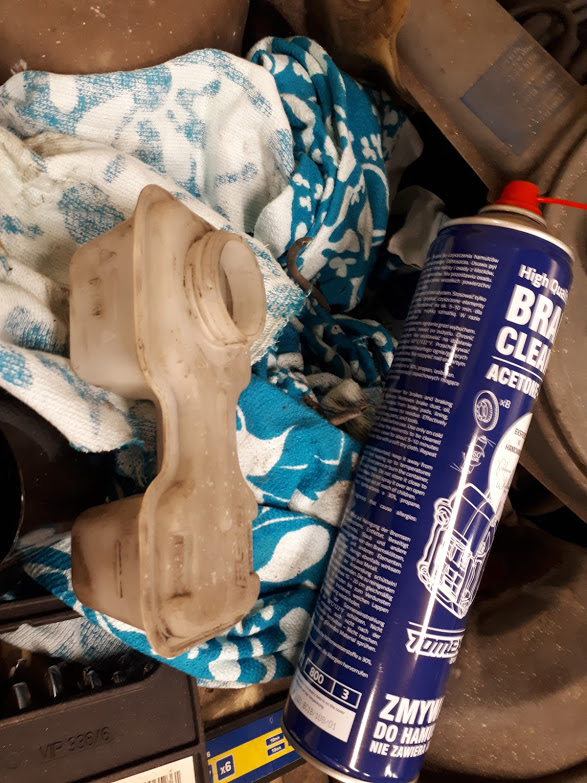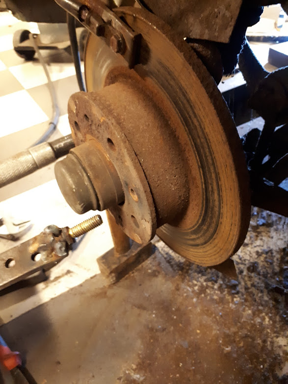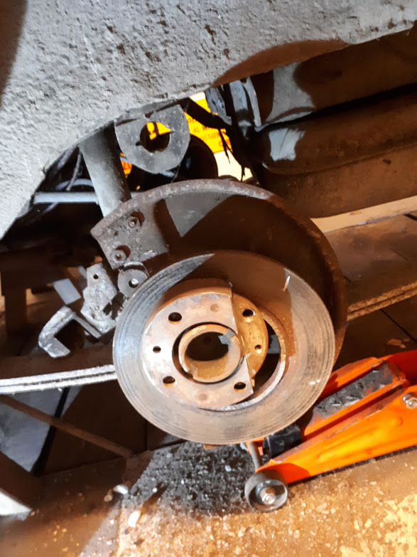 Nie idzie łatwo. tylna tarczka poszła tylko przy okazji użycia szlifierki, natomiast 2 szpilki tarcz trzeba było przyspawać do pręta i dopiero wtedy się udało odkręcić.
