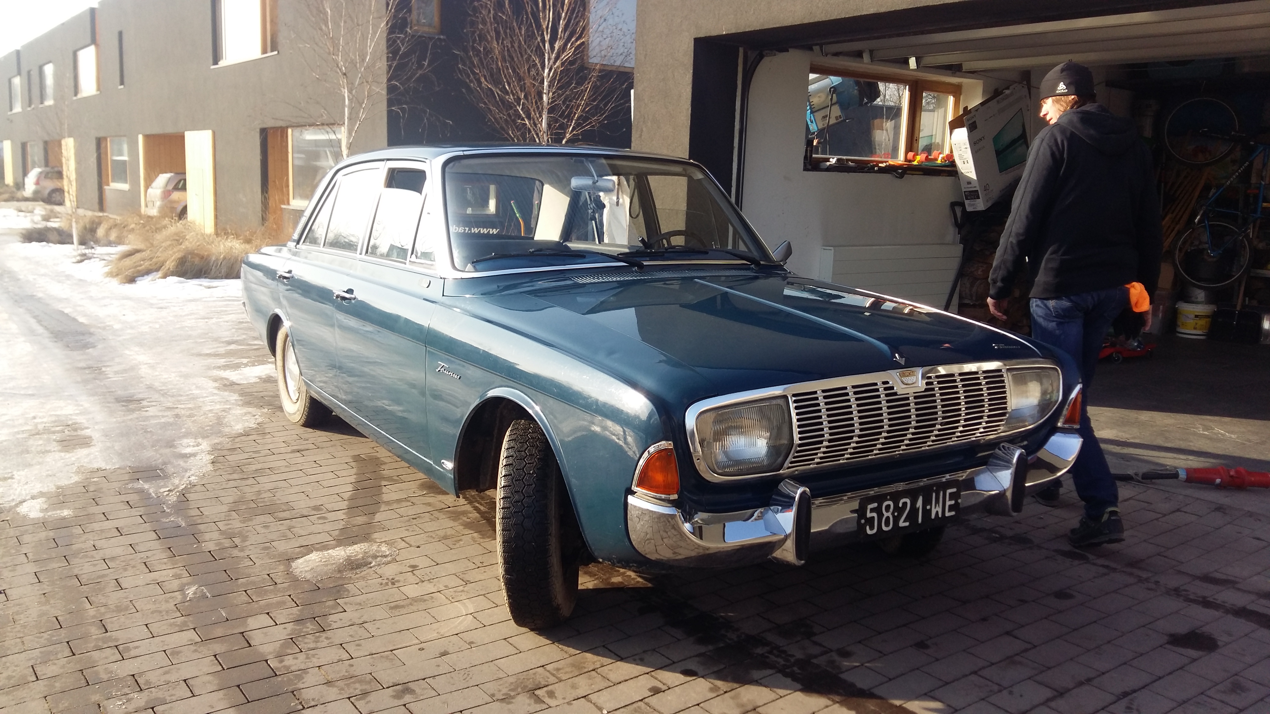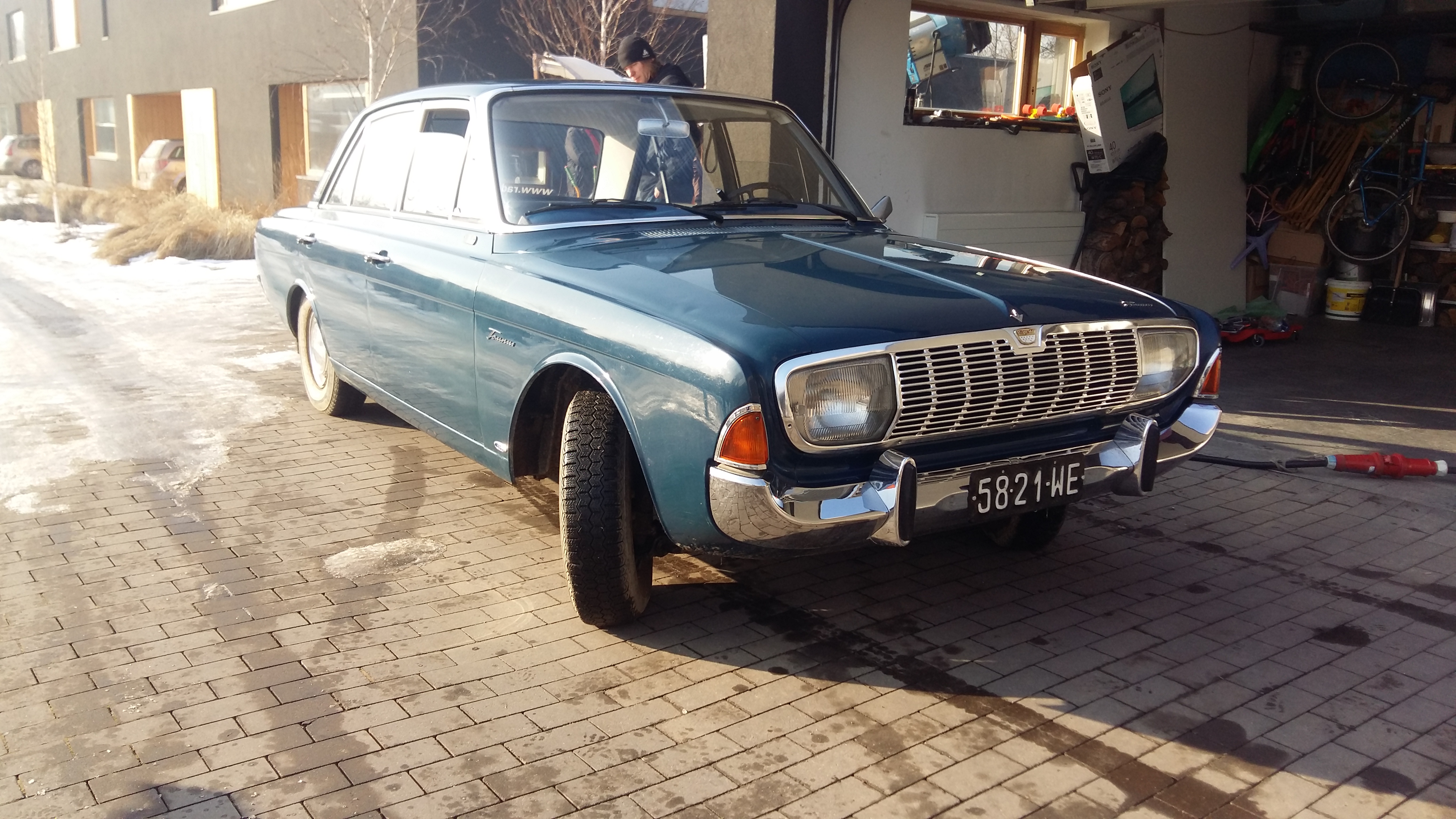 Taunusowi trafił się udział w reklamie firmy ubezpieczeniowej. Niby zima i sól, ale w zasadzie i tak musiałem sprawdzić auto bo na drugi dzień Nikodem jechał nim do ślubu. Wszystko poszło ok, a największe wrażenie zrobiły na mnie pierogi z kurkami w barobusie. Bo przecież nie spodziewałem się awarii taunusa… 😉
