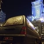 Potem od słowa do słowa…. rzuciłem pomysł na wspólną przejażdżkę wieczorową porą w kilka carvanów.  Tomek a Adamem podłapali temat i zorganizowali Piastowską Paradę carvanów, która to przyciągnęła naprawdę sporą widownię ( panowie szacunek za organizację, m.in. obstawę policji i wlepki). Trochę dziwnie się poczułem gdy wraz z Maćkiem wylądowaliśmy naszą bellą wśród 23 caravanów dostojnie sunących al. Jerozolimskimi. Pod pałacem wspólne zdjęcia i zapiekanki od Tomka. Dziękujemy za wspólny przejazd… ale więcej chyba takich  nie będzie. Poznaliśmy też dobrego świra, który swoją bellą objechał złombol i założył w niej faltdach. Ma z niej teraz świetnego kampera A ja wciąż nie wiem po co nam taki pojazd ( koledzy sugerują food truck ), jeszcze nad tym pomyślimy.  FILM z PARADY