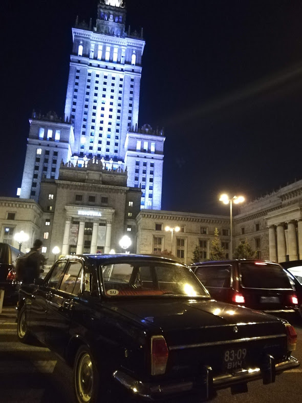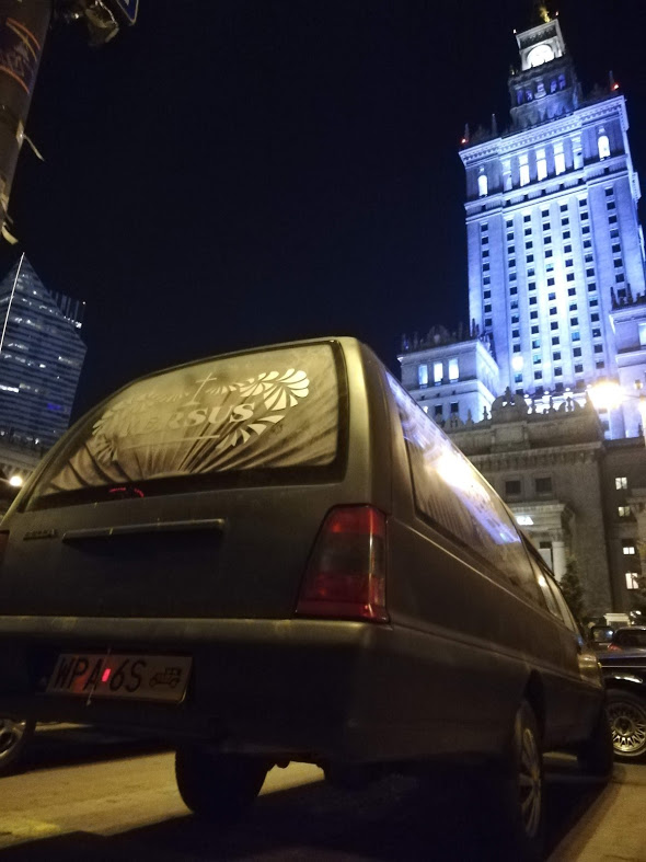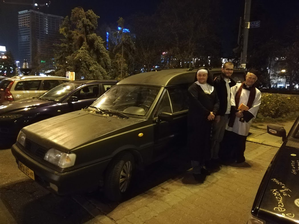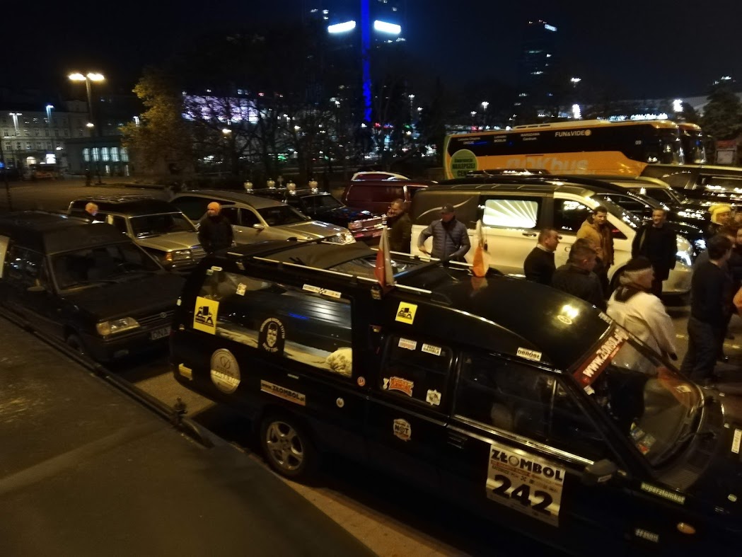 Potem od słowa do słowa…. rzuciłem pomysł na wspólną przejażdżkę wieczorową porą w kilka carvanów.  Tomek a Adamem podłapali temat i zorganizowali Piastowską Paradę carvanów, która to przyciągnęła naprawdę sporą widownię ( panowie szacunek za organizację, m.in. obstawę policji i wlepki). Trochę dziwnie się poczułem gdy wraz z Maćkiem wylądowaliśmy naszą bellą wśród 23 caravanów dostojnie sunących al. Jerozolimskimi. Pod pałacem wspólne zdjęcia i zapiekanki od Tomka. Dziękujemy za wspólny przejazd… ale więcej chyba takich  nie będzie. Poznaliśmy też dobrego świra, który swoją bellą objechał złombol i założył w niej faltdach. Ma z niej teraz świetnego kampera A ja wciąż nie wiem po co nam taki pojazd ( koledzy sugerują food truck ), jeszcze nad tym pomyślimy.  FILM z PARADY