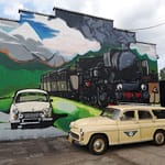 W piątkowy poranek, wyspany i wypoczęty ( wstałem już o 3, tyle emocji) o 6.30 dojeżdżam do Skansenu stopem ( zabiera mnie przesympatyczny Pan Marek i Kamil). Szybka kolejowa kawa i wjeżdżam na podjazd ( podjazd z dawnych czasów gdy w lokomotywowni eksploatowano jeszcze żuki) jest idealny dla naszego wozu. Wyrywam pokrzywy i wchodzę pod wóz. Tutaj czeka mnie wymiana brzęczącego tłumika i przewodu hamulcowego. Naprawa idzie sprawnie, pozdrawiają mnie wjeżdżające składy: Krzysztof w SM42-742, Ty42-24 z już zaprzyjaźnionych Pyskowic a z drugiej strony Wolsztyn z Pt47-65. Szybka fota pod muralem, no właśnie. Na muralu jest syrena 105L tzw. syrena patentowa, którą miałem 10 lat, a teraz zamieszkała w Chabówce. Wzruszający moment.