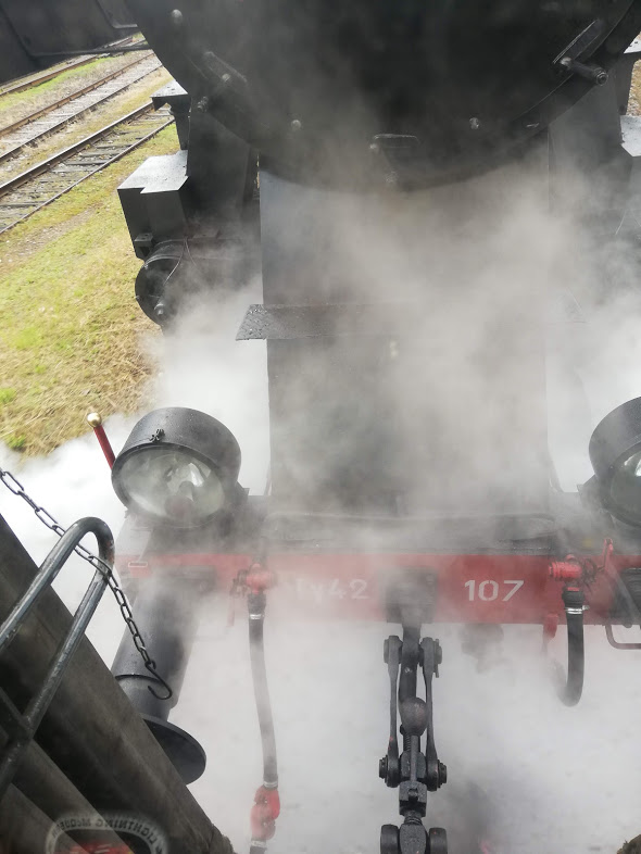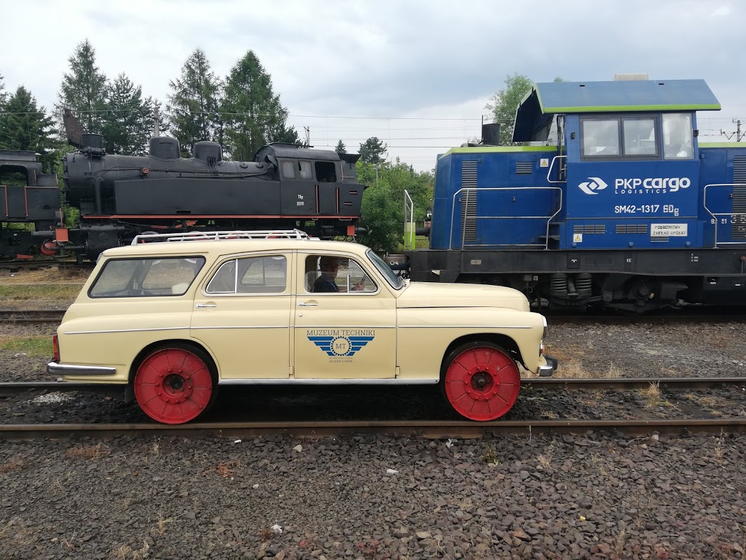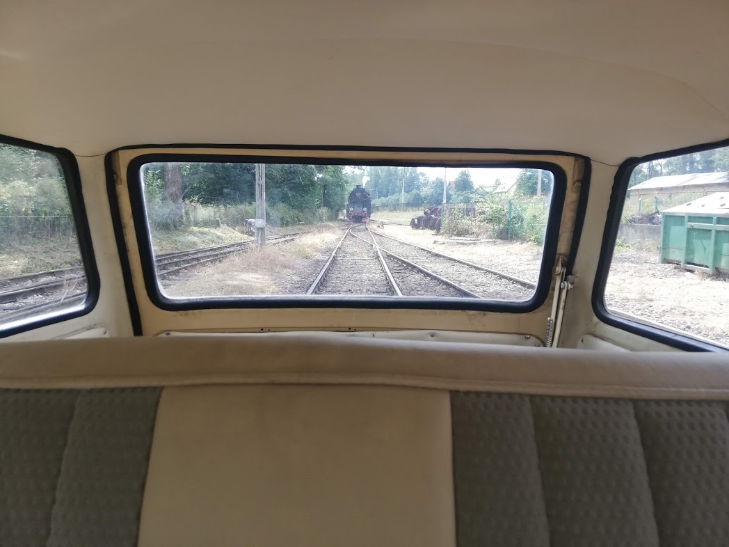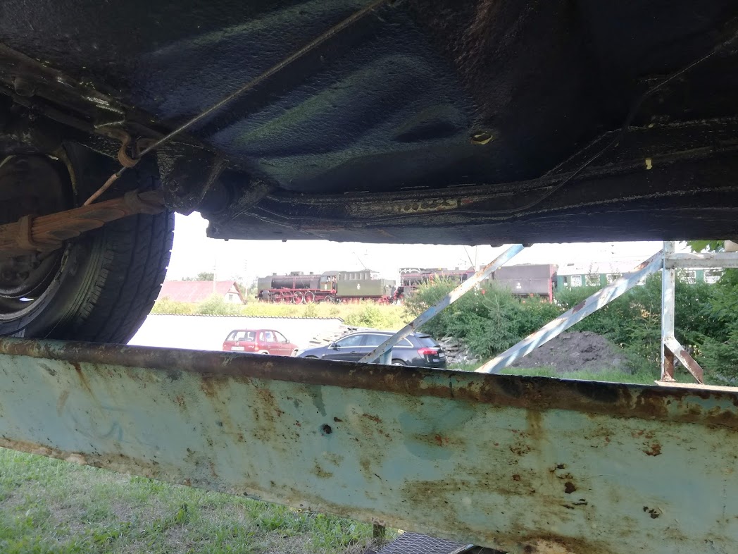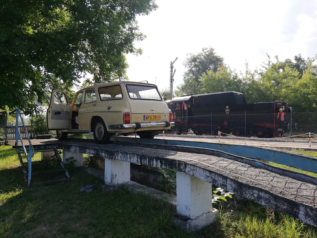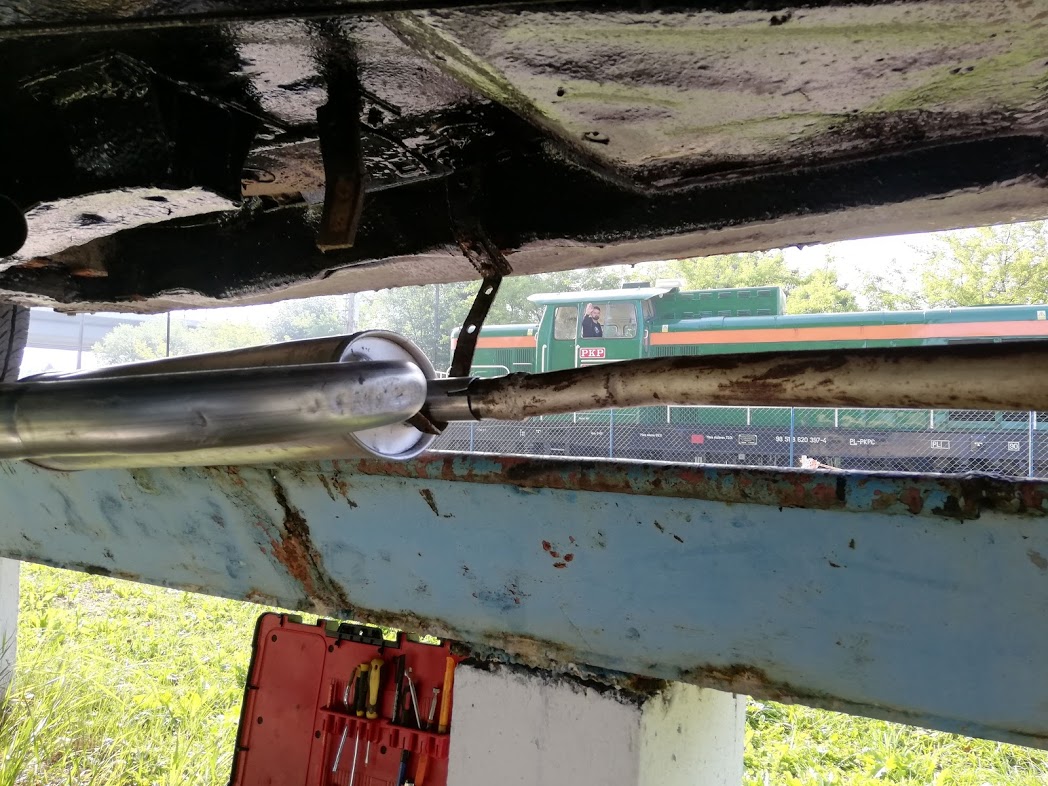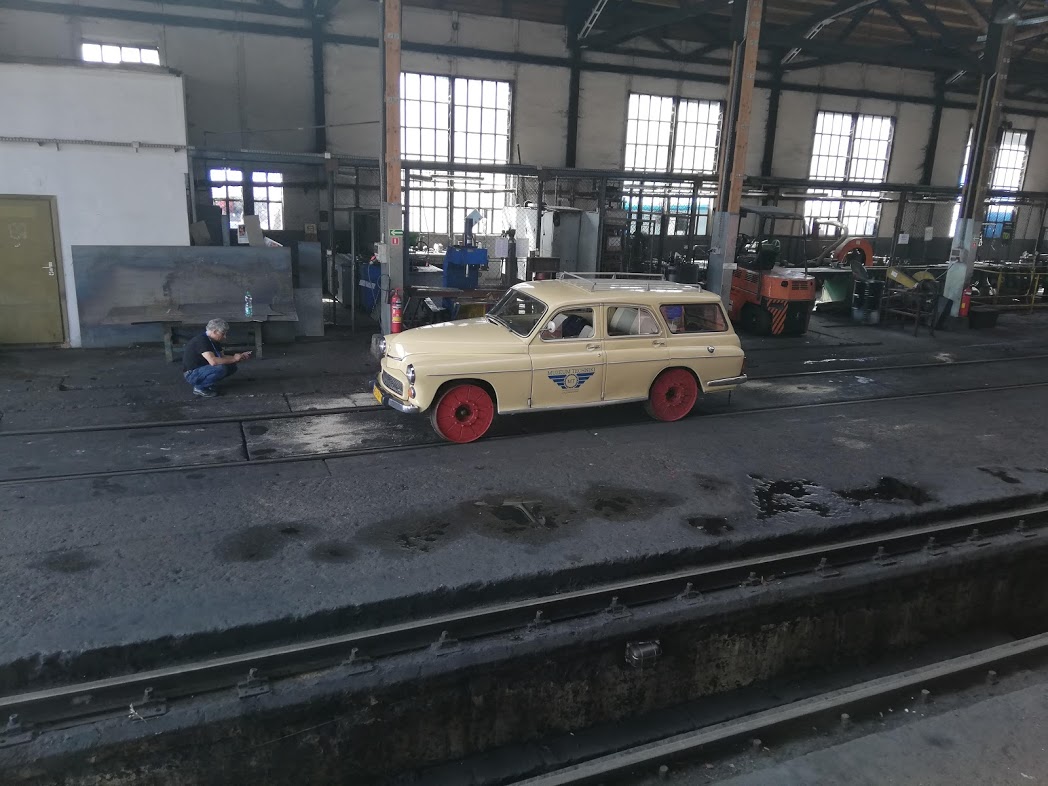 W piątkowy poranek, wyspany i wypoczęty ( wstałem już o 3, tyle emocji) o 6.30 dojeżdżam do Skansenu stopem ( zabiera mnie przesympatyczny Pan Marek i Kamil). Szybka kolejowa kawa i wjeżdżam na podjazd ( podjazd z dawnych czasów gdy w lokomotywowni eksploatowano jeszcze żuki) jest idealny dla naszego wozu. Wyrywam pokrzywy i wchodzę pod wóz. Tutaj czeka mnie wymiana brzęczącego tłumika i przewodu hamulcowego. Naprawa idzie sprawnie, pozdrawiają mnie wjeżdżające składy: Krzysztof w SM42-742, Ty42-24 z już zaprzyjaźnionych Pyskowic a z drugiej strony Wolsztyn z Pt47-65. Szybka fota pod muralem, no właśnie. Na muralu jest syrena 105L tzw. syrena patentowa, którą miałem 10 lat, a teraz zamieszkała w Chabówce. Wzruszający moment.