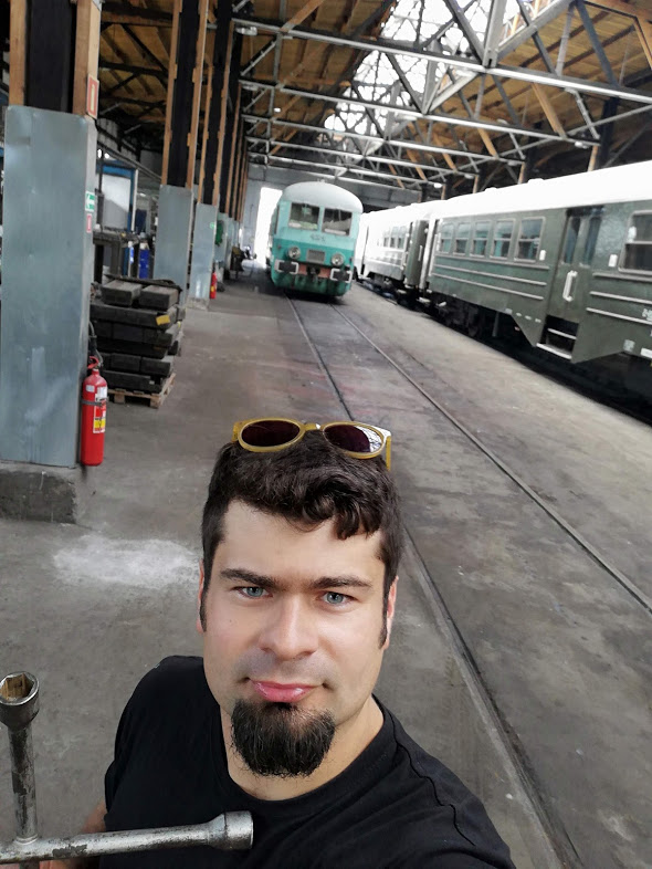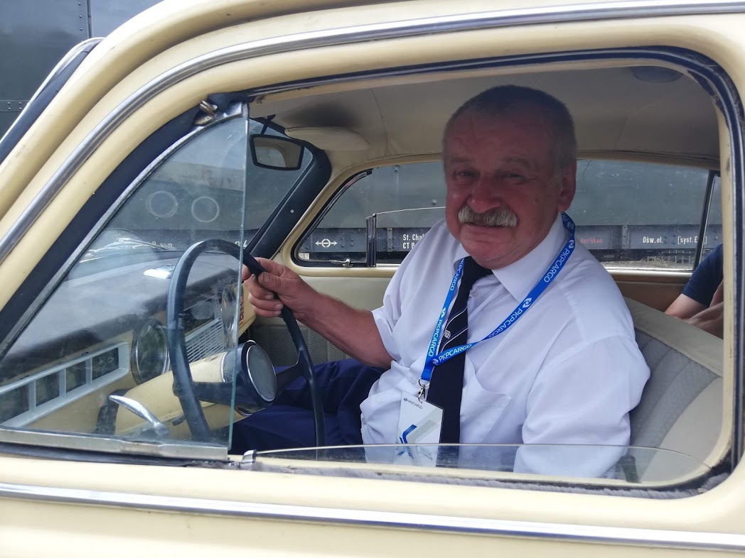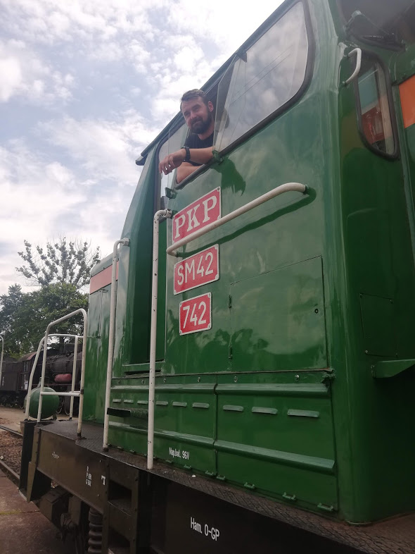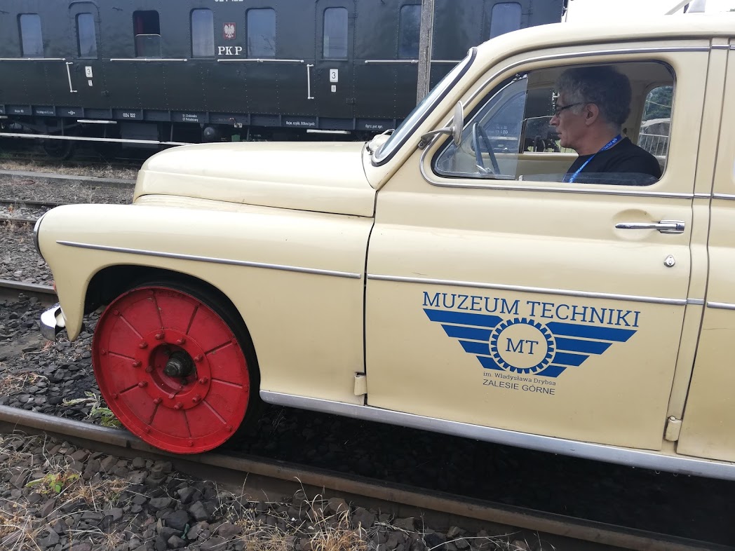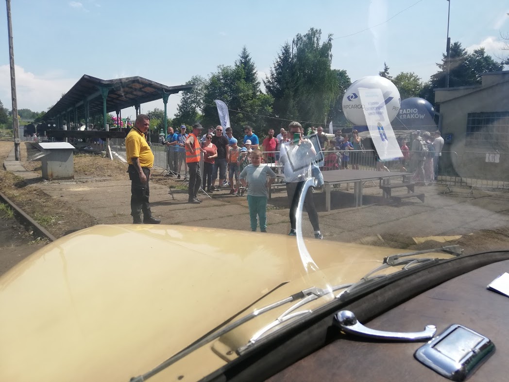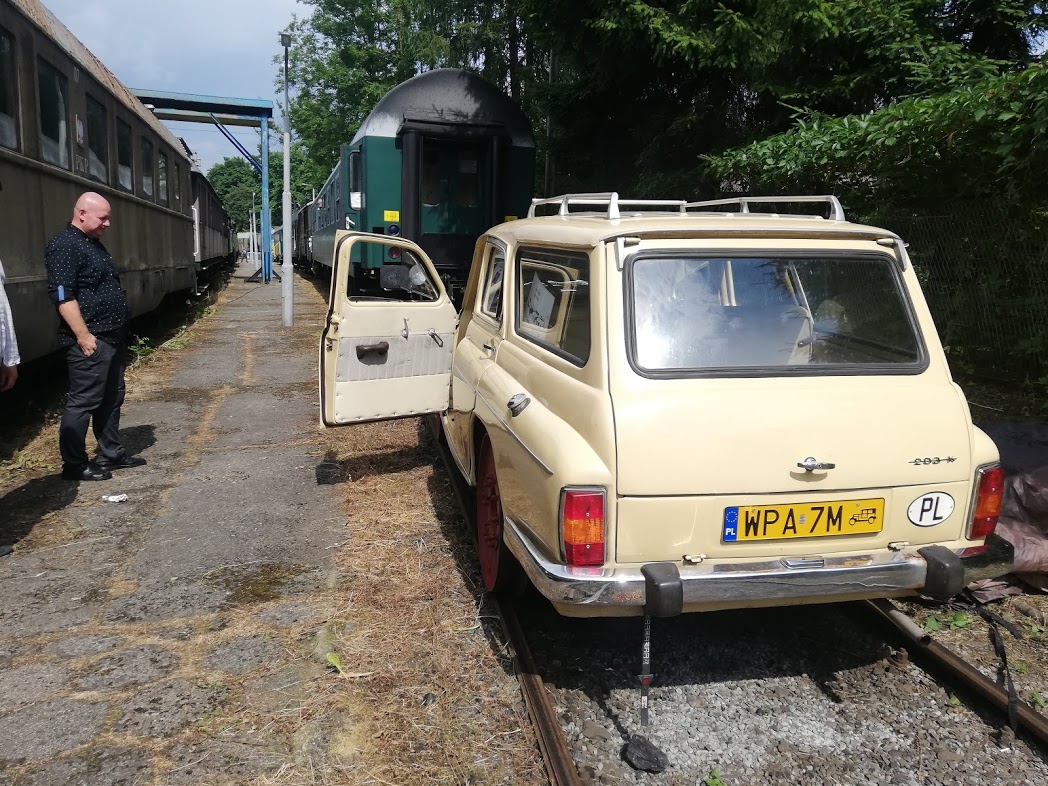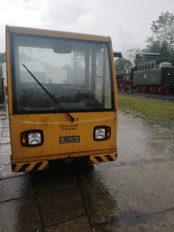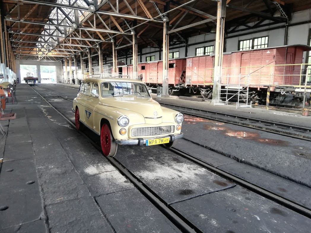 W piątkowy poranek, wyspany i wypoczęty ( wstałem już o 3, tyle emocji) o 6.30 dojeżdżam do Skansenu stopem ( zabiera mnie przesympatyczny Pan Marek i Kamil). Szybka kolejowa kawa i wjeżdżam na podjazd ( podjazd z dawnych czasów gdy w lokomotywowni eksploatowano jeszcze żuki) jest idealny dla naszego wozu. Wyrywam pokrzywy i wchodzę pod wóz. Tutaj czeka mnie wymiana brzęczącego tłumika i przewodu hamulcowego. Naprawa idzie sprawnie, pozdrawiają mnie wjeżdżające składy: Krzysztof w SM42-742, Ty42-24 z już zaprzyjaźnionych Pyskowic a z drugiej strony Wolsztyn z Pt47-65. Szybka fota pod muralem, no właśnie. Na muralu jest syrena 105L tzw. syrena patentowa, którą miałem 10 lat, a teraz zamieszkała w Chabówce. Wzruszający moment.