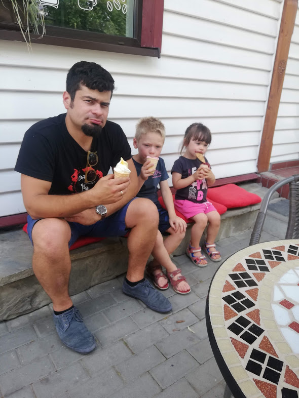 Po południu spokojna kolacja, o 21 odbieram tatę w pociągu i jedziemy do domku.