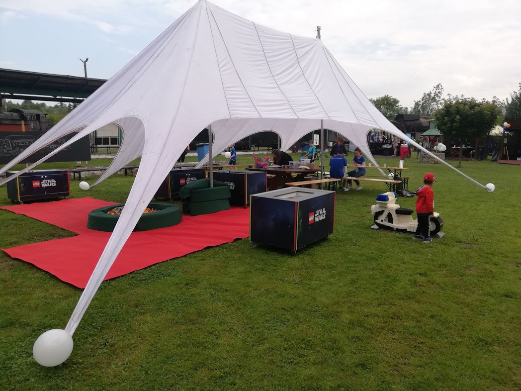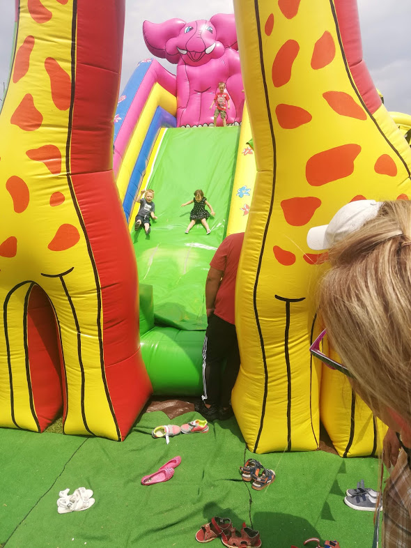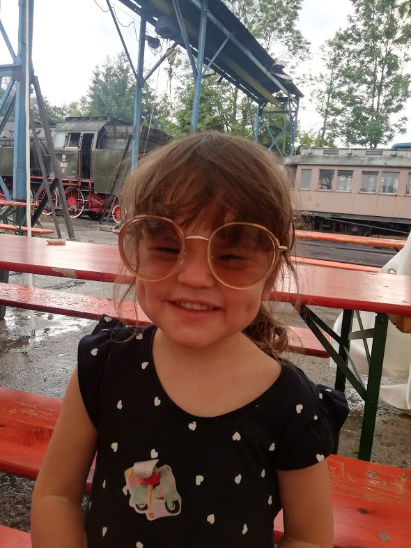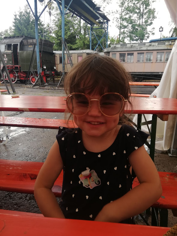 Dzieciaki szaleją na dmuchańcach, pogoda dopisuje, idziemy coś zjeść i nagle ulewa( chyba te parowozy przyciągają chmury) . Ale humory wciąż dopisują:) Oglądamy makietę w skali N, zabudowaną w wagonie Słowackim.