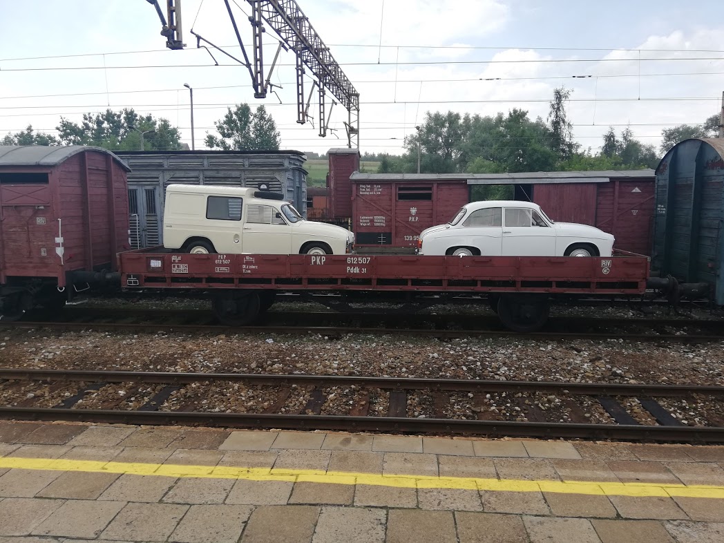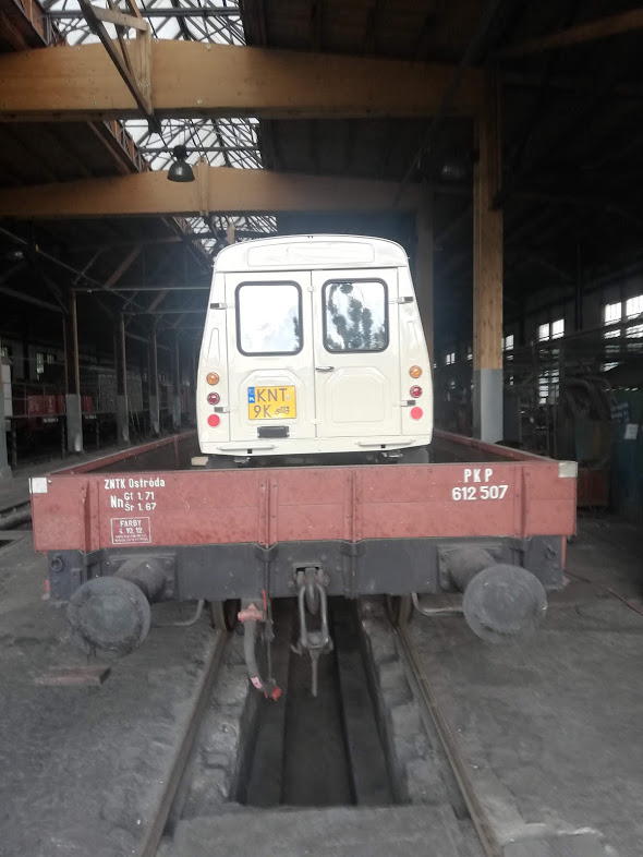 Czas nagli a pracy sporo, panowie ładują pięknie wyremontowane syreny (niczym z polmozbytu) na wagon platformę, która to przyjechała na Parowozjadę specjalnie aż z Wrocławia. Będą prezentować skład, jaki jeszcze 40 lat temu wyjeżdżał w Polskę z Bielskiego FSM-u ( to właśnie one wywołały efekt WOW w tłumie- miłe uczucie).
