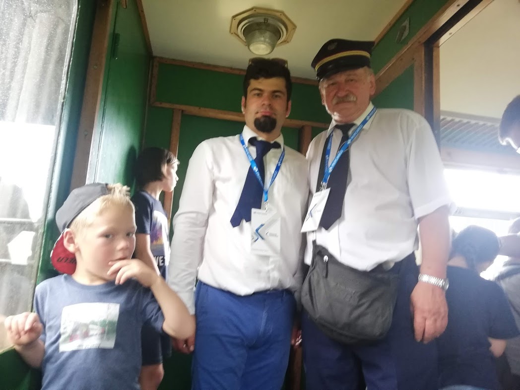 O 8 rano meldujemy się w skansenie, aby ustawić naszą drezynę na odpowiednim torze, oraz przeprowadzić ostanie próby… niedrogowe 😉 Pierwszymi pasażerami są: Pan Włodek, Kamil i młodzi konduktorzy. Pojazd zatwierdzony i już od 10 wozimy turystów, których kolejka rosła i rosła. W związku z olbrzymim zainteresowaniem naszym pojazdem, wydłużyliśmy godziny kursowania blisko o godzinę. Przejazdy zaowocowały nowymi ciekawymi znajomościami, również muzealnymi.