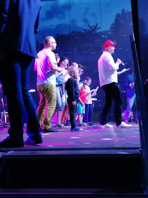 Wieczorową porą słuchamy koncertu. Jest też konkurs dla młodzieży i Stefan wyrywa się na scenę, będą recytować lokomotywę ( a przecież w swoim przedszkolu właśnie to szlifował na zakończenie roku). Mimo wielkiego stresu idzie na scenę i potańcując przyłącza się do śpiewającej rodziny. Tym samym wygrywa pakiet upominków od PKP CARGO. Coś pięknego!