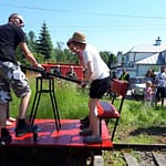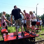 Czas beztroski i relaksu powoli mijał i zawodnicy ruszyli do kolejnego etapu. Teraz  odwiedzili bliski memu sercu Złotokłos. Tutaj próbę przeprowadzał Drezyniarz Jacenty, Marcin oraz Jarek (którego nie dało się nie zauważyć. A swym strojem przykuwał zasłużoną uwagę) Uczestnicy trafili tam na wyprzedaż papieru w lokalnym GS-ie i musieli się po niego udać drezyną ręczną. Emocji było wiele. Po skończonej konkurencji, poza konkursem z drezynki skorzystali też motocykliści, którzy nam dzielnie kibicują ( dla nich też zrobię rajd, obiecuję).  Załogi zjechały na metę w piasecznie, wciąż podróżując  wzdłuż i w poprzek linii kolejowej Piaseczno-Tarczyn. Na mecie, najlepsze załogi otrzymały  z rąk prezesa Automobilklubu Piaseczyńskiego oraz Burmistrza puchary i nagrody rzeczowe.