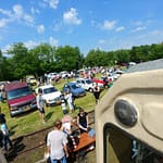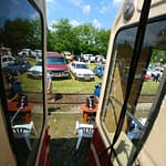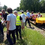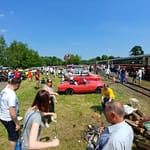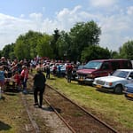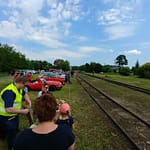 Tutaj uczestnicy rozwiązywali zagadkę pt. “jasny gwint” gdzie musieli dopasować różne gwinty lewe i prawe. Po czym piekli kiełbaski przy ognisku ( które wzorowo zabezpieczył Kornel wraz sąsiadem i zjawiskowym szarym żukiem) gdy nagle… nadjechała oczekiwana przez dużych i małych lokomotywa Lxd2 (produkcja  fabryki Augusta FAUR w Bukareszcie) Tutaj podziękowania dla pana Janusza, Henryka i Adriana za pokazanie uczestnikom jak działa lokomotywa. Zajechał pociąg  wraz z piknikowym składem i pasażerami, którzy pośród naszych rajdowiczów wybrali najpiękniejsze auto (Citroen BL 11 ) którego załoga ubrała się stosownie do epoki swojego wehikułu i zdobyła Puchar Pasażera. Myślę, że niejednemu kolejarzowi łezka się w oku zakręciła, gdy zobaczył tętniąca życiem i turystami stację Tarczyn. Stację, która takich tłumów nie wdziała pewno ze 30 lat.