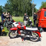 Pierwszą próbą była konkurencja strzału w poprzeczkę ( dziękujemy klubowi Jedność Żabieniec za spektakularna próbę, która okazała się kluczowa w klasyfikacji rajdu).  Następnie poprzez piękne tereny, nasze załogi odwiedziły skromny muzealny garaż w krainie leśnych boginków. Tu z kolei musieli rozpoznać płyny, czy to wino czy też płyn hamulcowy DA-1. Załoga nr 2 nawet odważyła się próbować 😉 i otrzymali upominki dla swoich aut.  Wyjeżdżając z jakże malowniczego Zalesia Górnego odwiedziliśmy teren dzielnicy filmowej(tutaj Sebo, nasz klubowy kolega ds. motocykli dzielnie regulował ruchem) szukając samochodu ford anglia oraz przedszkola Stefana.