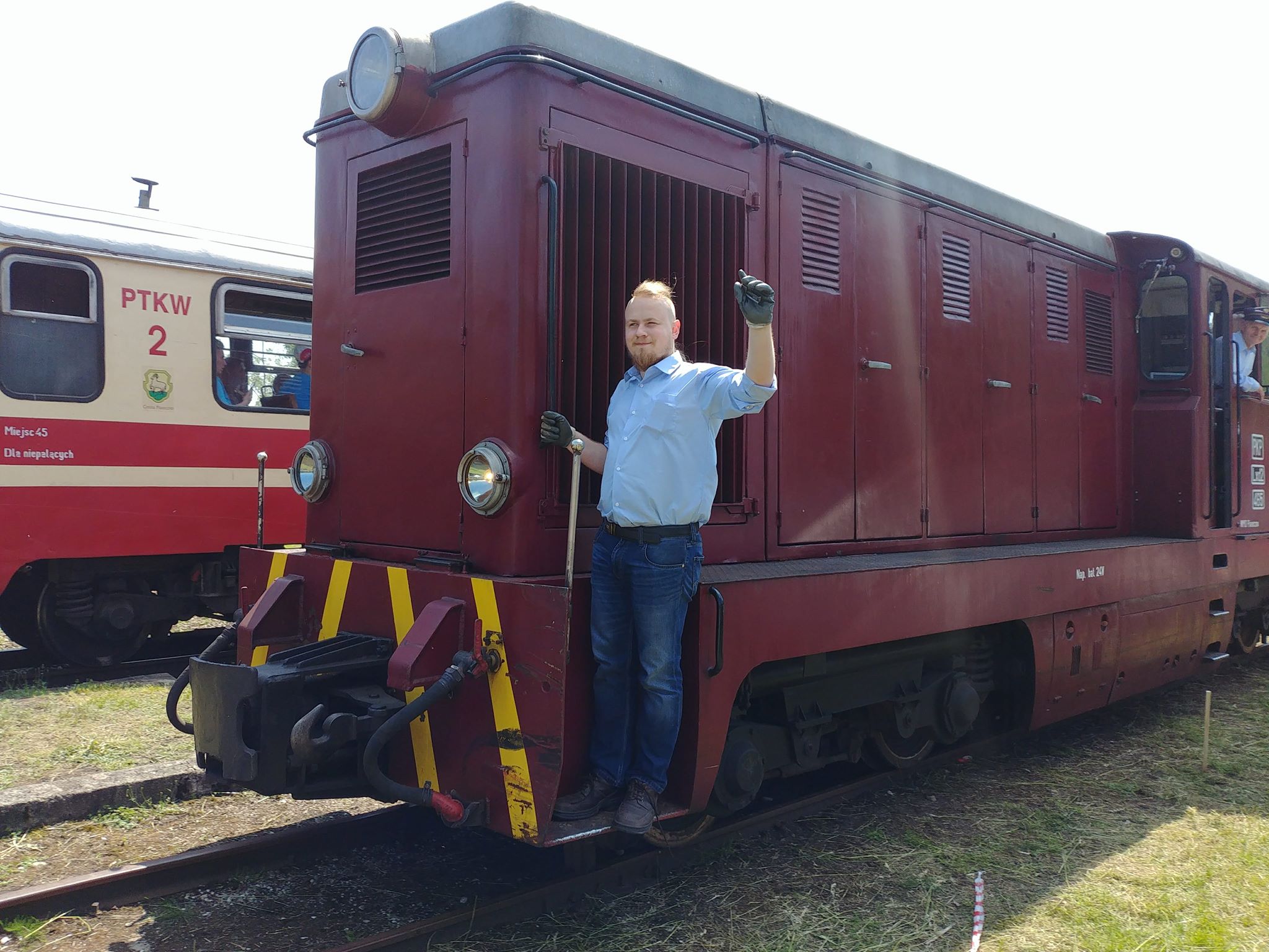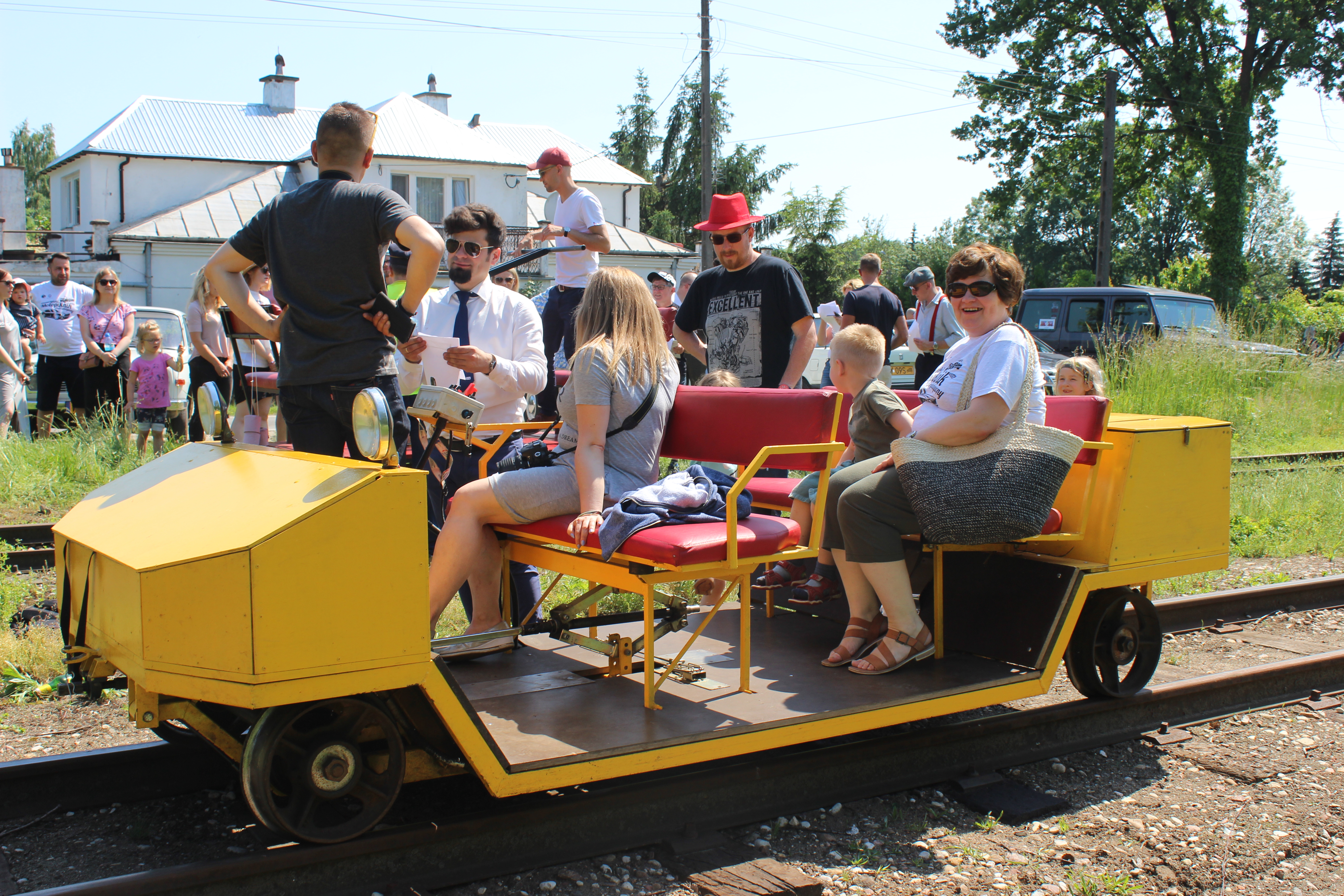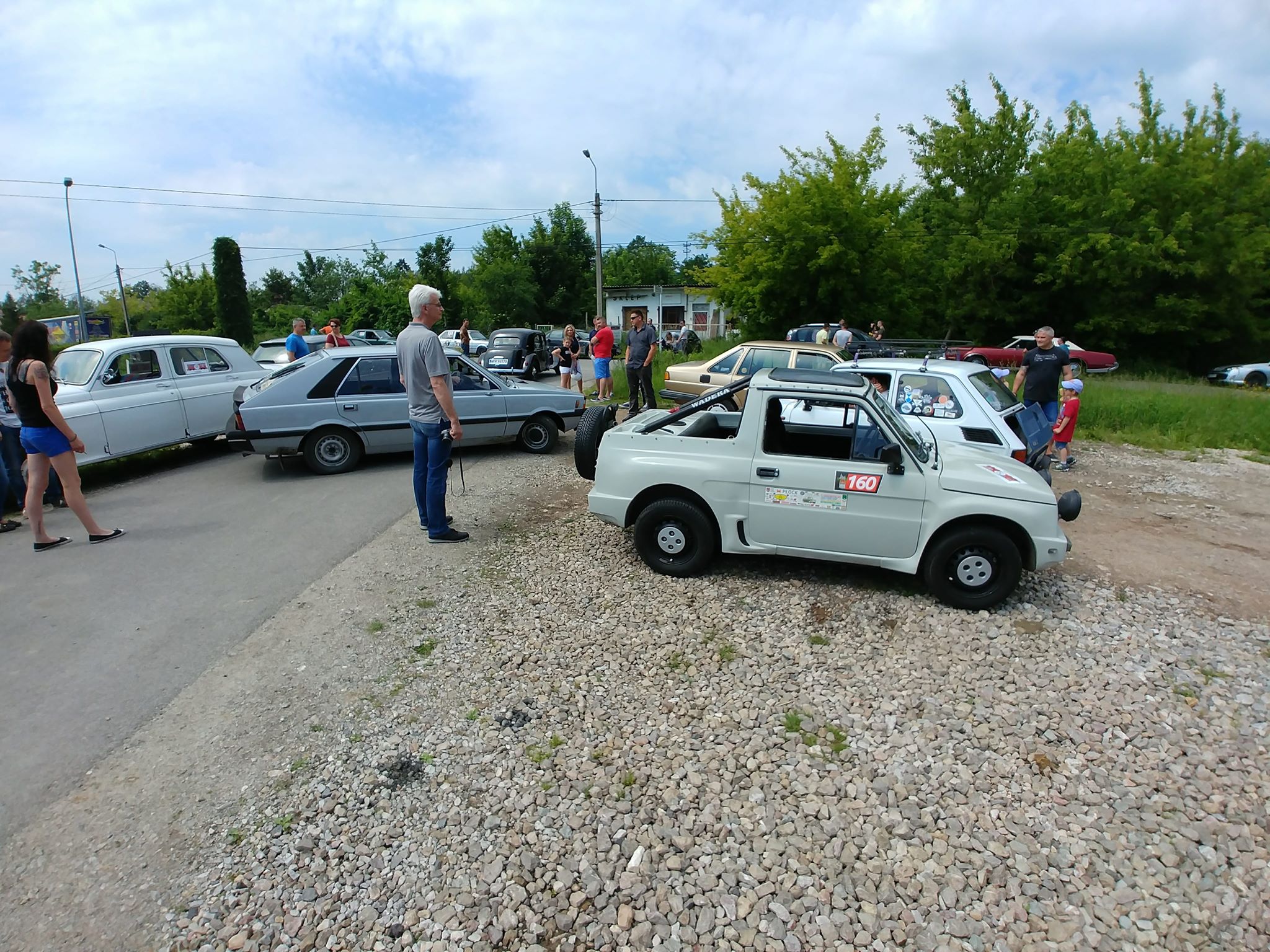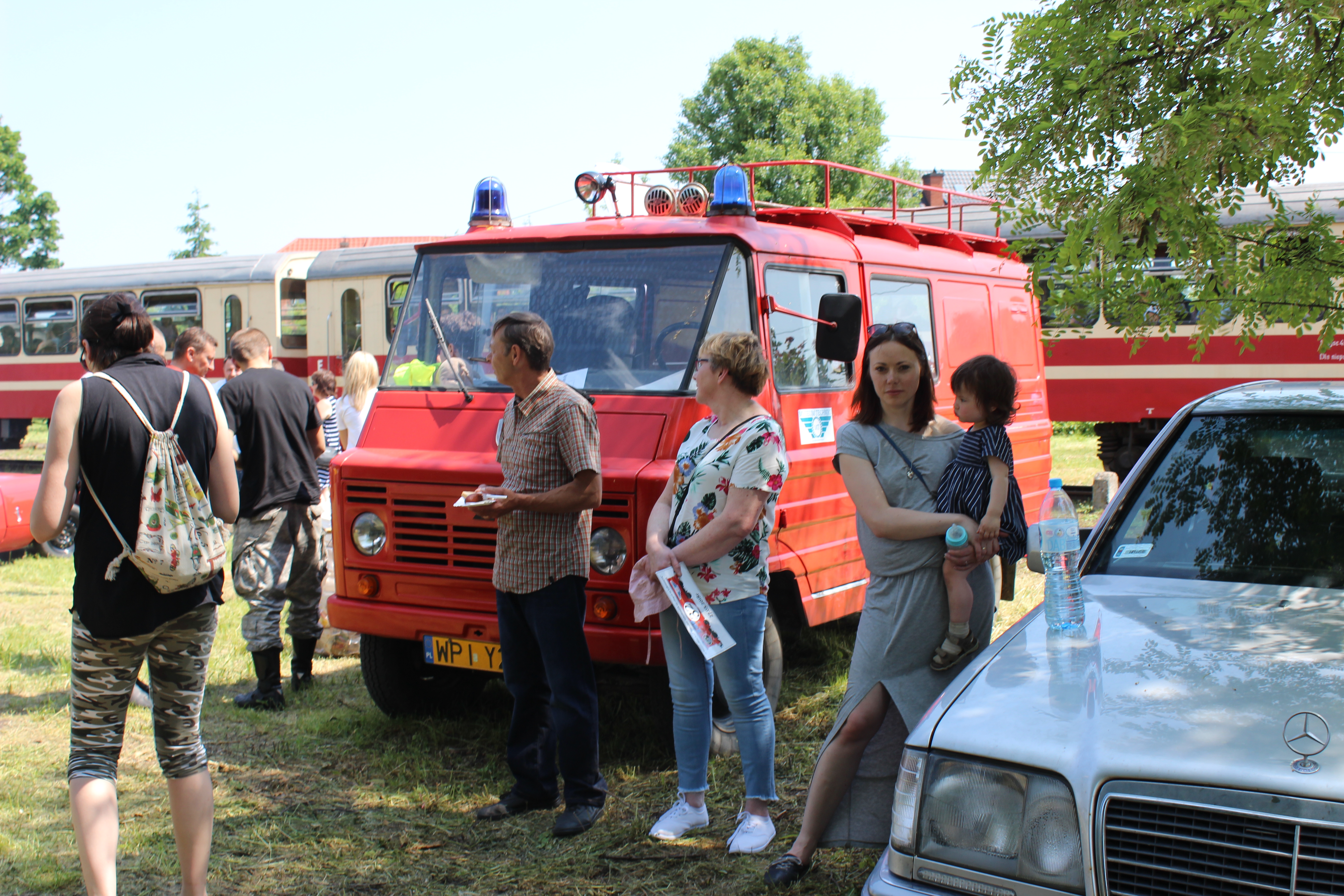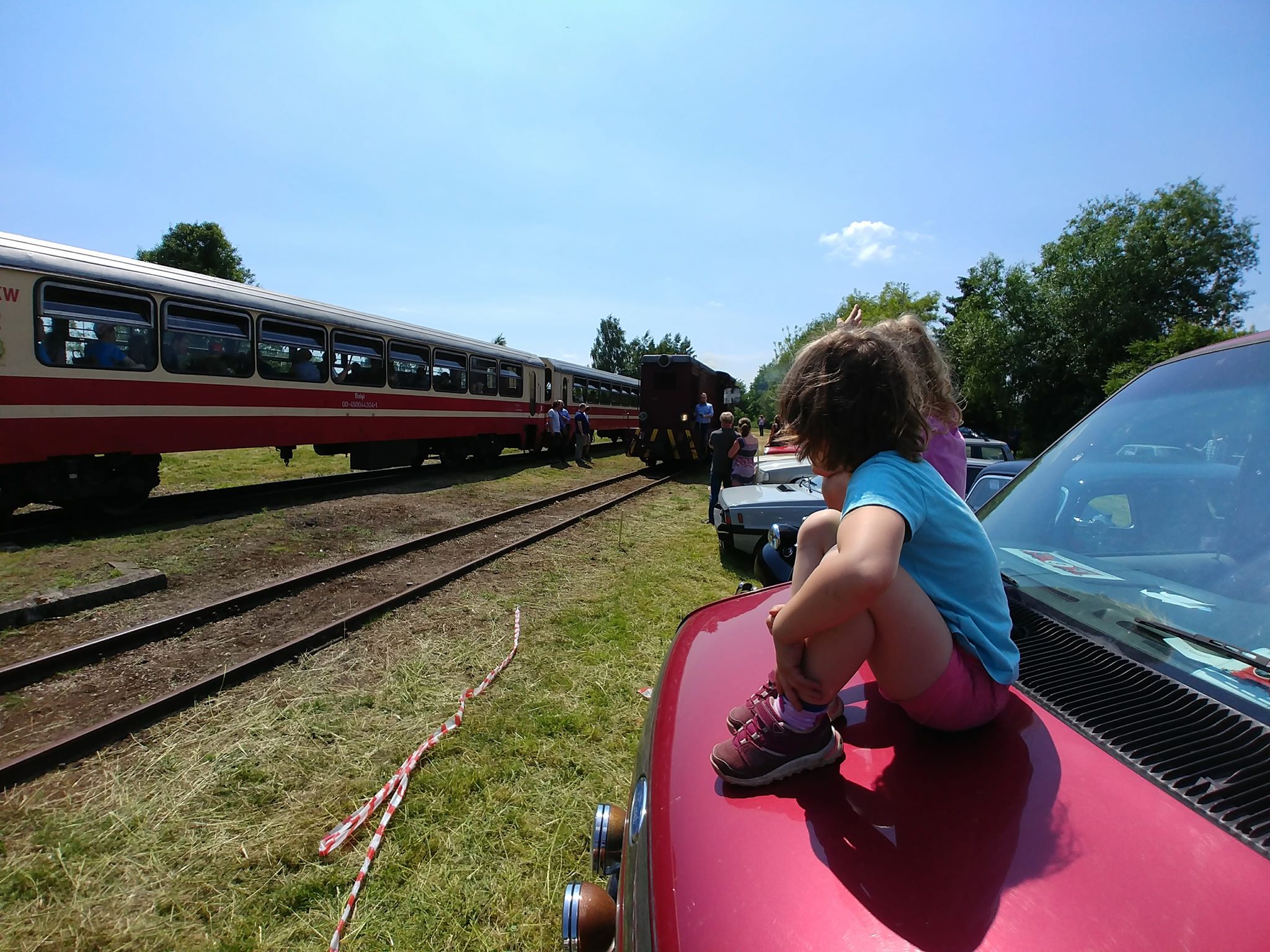 Tutaj uczestnicy rozwiązywali zagadkę pt. “jasny gwint” gdzie musieli dopasować różne gwinty lewe i prawe. Po czym piekli kiełbaski przy ognisku ( które wzorowo zabezpieczył Kornel wraz sąsiadem i zjawiskowym szarym żukiem) gdy nagle… nadjechała oczekiwana przez dużych i małych lokomotywa Lxd2 (produkcja  fabryki Augusta FAUR w Bukareszcie) Tutaj podziękowania dla pana Janusza, Henryka i Adriana za pokazanie uczestnikom jak działa lokomotywa. Zajechał pociąg  wraz z piknikowym składem i pasażerami, którzy pośród naszych rajdowiczów wybrali najpiękniejsze auto (Citroen BL 11 ) którego załoga ubrała się stosownie do epoki swojego wehikułu i zdobyła Puchar Pasażera. Myślę, że niejednemu kolejarzowi łezka się w oku zakręciła, gdy zobaczył tętniąca życiem i turystami stację Tarczyn. Stację, która takich tłumów nie wdziała pewno ze 30 lat.