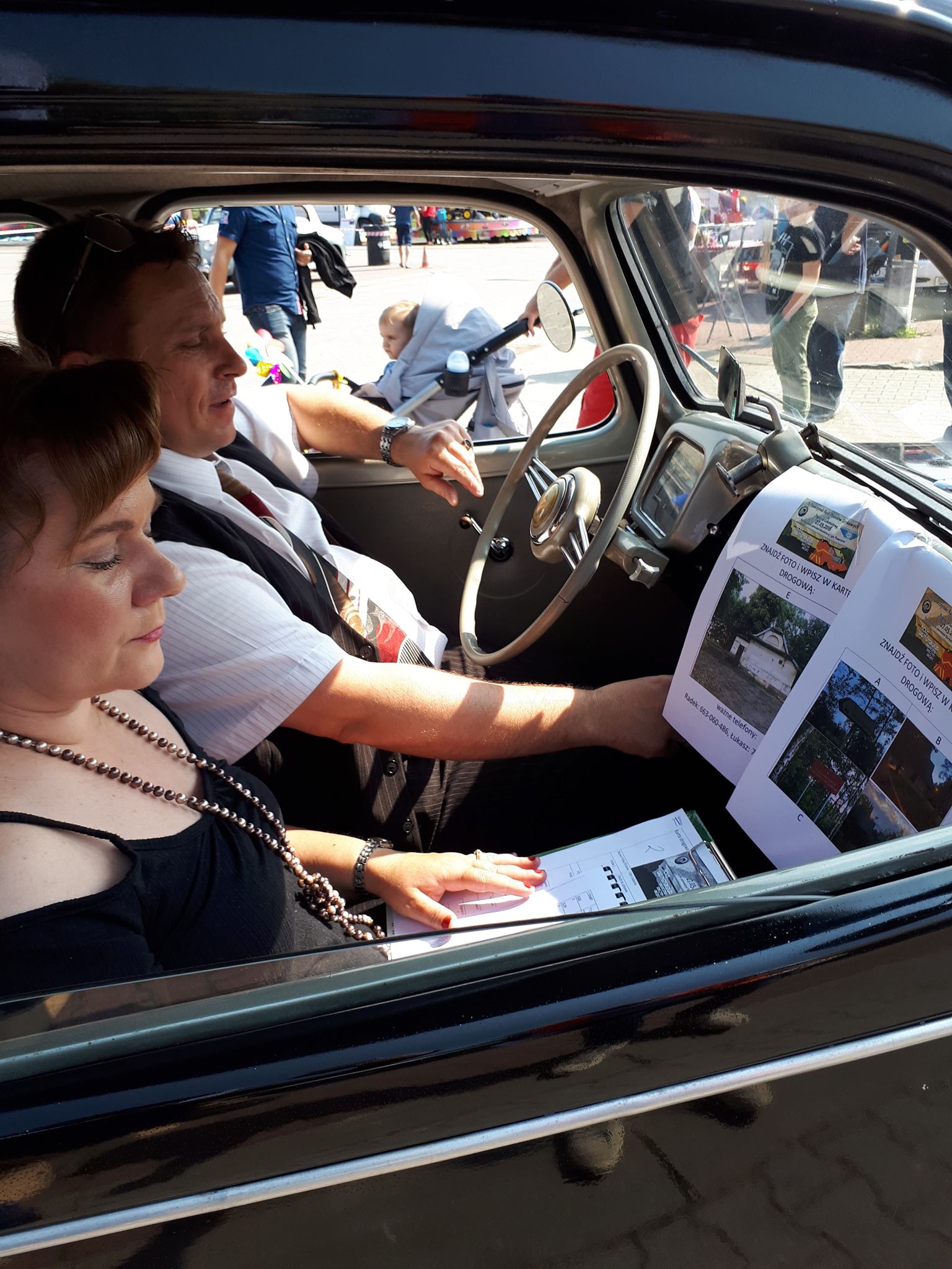 Piękne samochody zawitały do nas na start. Już po godzinie 8 rano wiele załóg zameldowało się w biurze rajdu, w tym wiele załóg z dziećmi( na których to udział także liczyłem – i słusznie! Helenka (8 lat) już od 2 kratki sama nawigowała !!!  . Lekkie zamieszanie z numerami ale wyszliśmy z tego cało:)