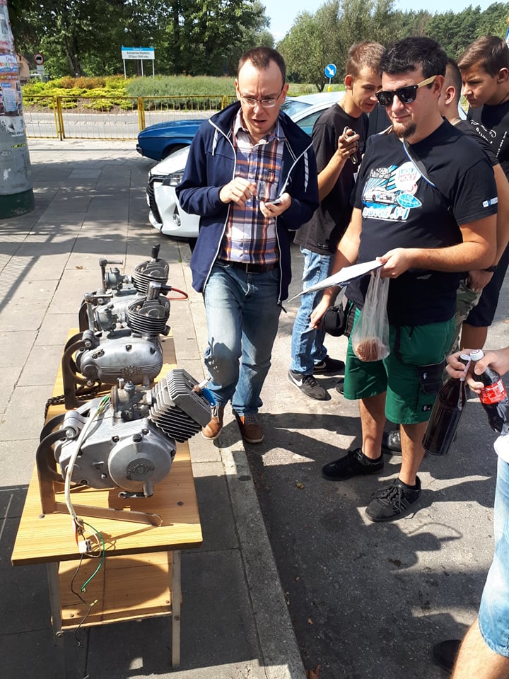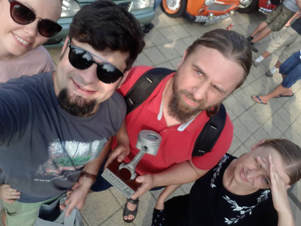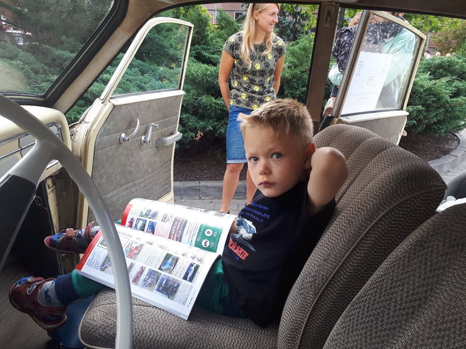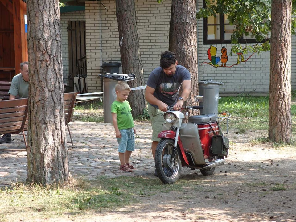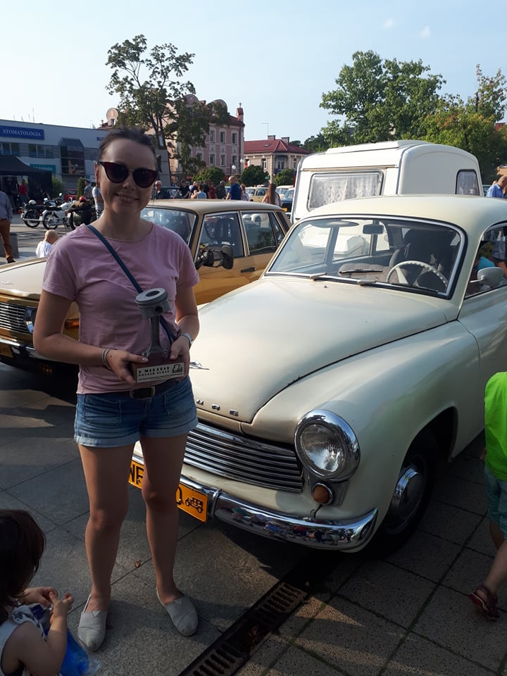Na starcie spotykamy wielu starych znajomych, choć coraz mniej ich już się pojawia. A szkoda bo znamy się jeszcze ze zlotów na srebrnej ( zloty syren 2000-2005r.) Tym razem trasa prowadzi przez Majdan ( tam zakupiliśmy wino Mamrot i rozpoznawaliśmy silniki z kolekcji “kuzyna” Jacka) poprzez Wólkę Dąbrowiecką, Sulejów gdzie czekała na nas pyszna kiełbasa w Czesiowym Siedlisku. Pojechaliśmy też na pyszne lody do Jadowa ( 4 smaki, zawsze te same i zawsze pyszne!) Na mecie zaskoczył nas widok nowych domków w Brockim ośrodku( bo rok temu trafiliśmy wyjątkowo podły domek, po którym nie ma już na szczęście śladu). Regeneracyjny żurek, fura kiełbasy, ognisko i świetna kapela Fuzzle gdzie z dziećmi szaleliśmy pod sceną 🙂 Poranek przywitał nas ciepłym słońcem, awarią wartburga Karola oraz malucha w którym złamał się kluczyk. Na szczęście dwaj psuje: Syreniarz Atom oraz Adam wycieli diaksem (pożyczonym od budowniczych domków w ośrodku) stacyjkę i maluch ruszył w trasę! Nam udało się jeszcze zaliczyć ze Stefanem 2 rundki na przepięknej jawie ( o której zawsze marzyłem…) Jacka, jeżdżąc po ośrodku informowaliśmy o godzinie wyjazdu na trasę. Jako, że 2 września to Imieniny Stefanka, to zlot był jego prezentem, no i jeszcze elektryczna łódka . Po drodze lody w Jadowie i rynek w Wołominie! Tam Jacek pokazał nam “Wakacje na Południu” gdzie zjedliśmy pyszny bałkański obiad. Rozdanie nagród… i okazuje się, że wartburg jest prawie najpiękniejszym i najciekawszym autem zlotu ( przegrywamy zasłużenie z wołga m21). Dziękujemy za piękny puchar i “wołomińskie gadżety”. Kubek pt.” mam przyjaciół w Wołominie” będzie od teraz ” straszył” kolegów w pracy 😉 W rajdzie nie idzie nam najlepiej zajmujemy 17 miejsce ( rok temu 2), ale zawsze możemy zrzucić winę na dzieci 😉 Sama forma przejazdu nam szalenie odpowiada,. Nie musimy dusić się w kolumnie ani też specjalnie skupiać na itinererze. Co z dziećmi na pokładzie jest naprawdę trudne :)Do zobaczenia za rok !!!