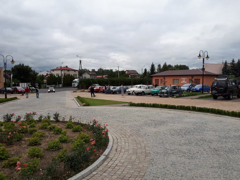 Na starcie przywitała nas ogromna liczba aut ( a było ich chyba blisko 80!) krótka odprawa i w drogę. Pierwszy punkt to zagadki motoryzacyjne w miejscowości Stare Grabie. Można też było zobaczyć dość już rzadki widok jakim są stare wozy służące jako wątpliwej urody reklamy. Szybkie rozwiązanie zagadek (dobrze, że 3 lata temu byłem z Witkiem motocyklem m-72 na nocnym rajdzie motocyklowym w Narolu, stąd wiem czy się różni emkaM-72 od Kaśki-k750).