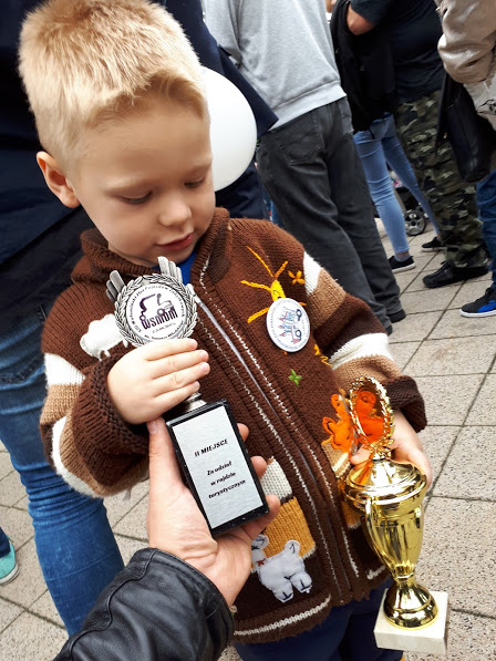 Na drugi dzień podczas podsumowania zlotu okazało się, że Jagoda była najmłodszym uczestnikiem zlotu a my zajęliśmy 2 miejsce w rajdzie turystycznym( wow!) i dostaliśmy stosowne puchary. A Stefan od bardzo ładnych Pań bliźniaczek dostał medal, z czego był bardzo dumny.