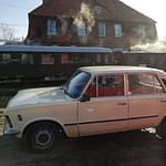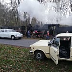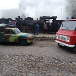 W sobotę rano na stacji Środa Wielkopolska odebrał nas podstawiony idealny duży fiat ( chyba L87 kość słoniowa to najbardziej PRLowki kolor auta…) i szybko dowiózł na stację, gdzie oczekiwał przygotowany skład 2 x 1aw (cieplutkie wagoniki z rozpalonymi piecami węglowymi i 1 brankard).