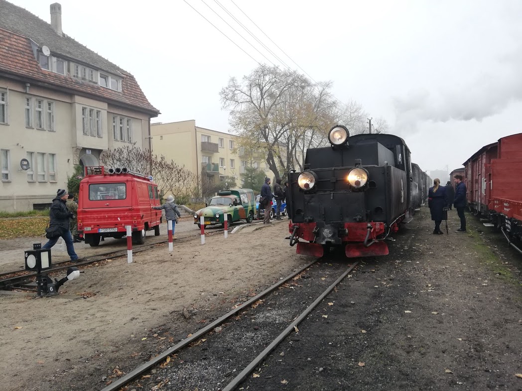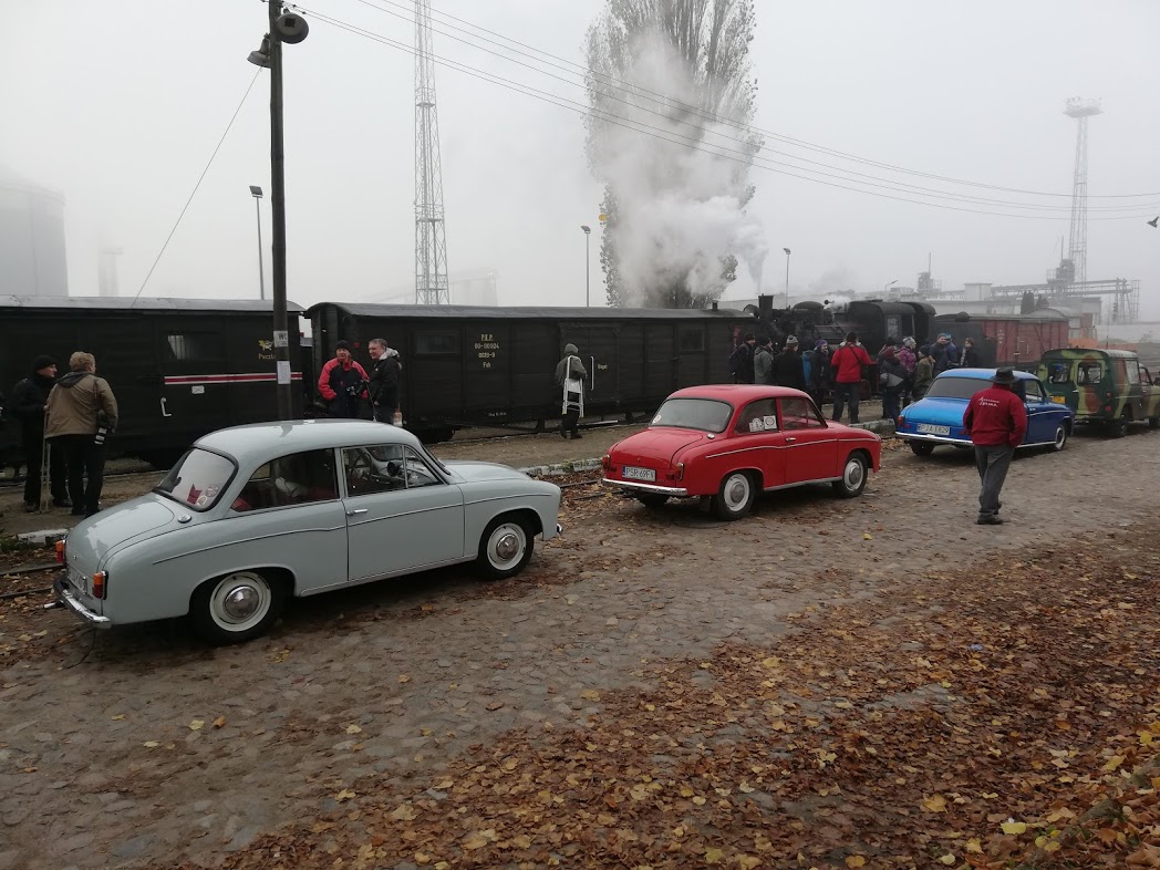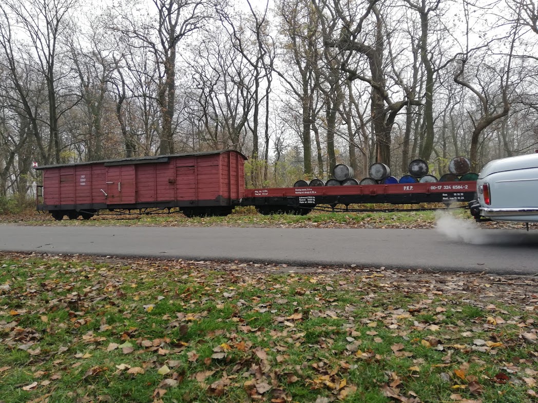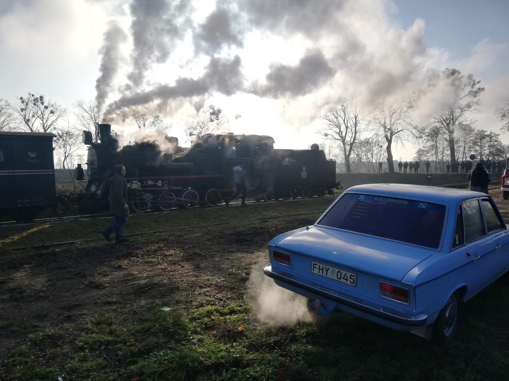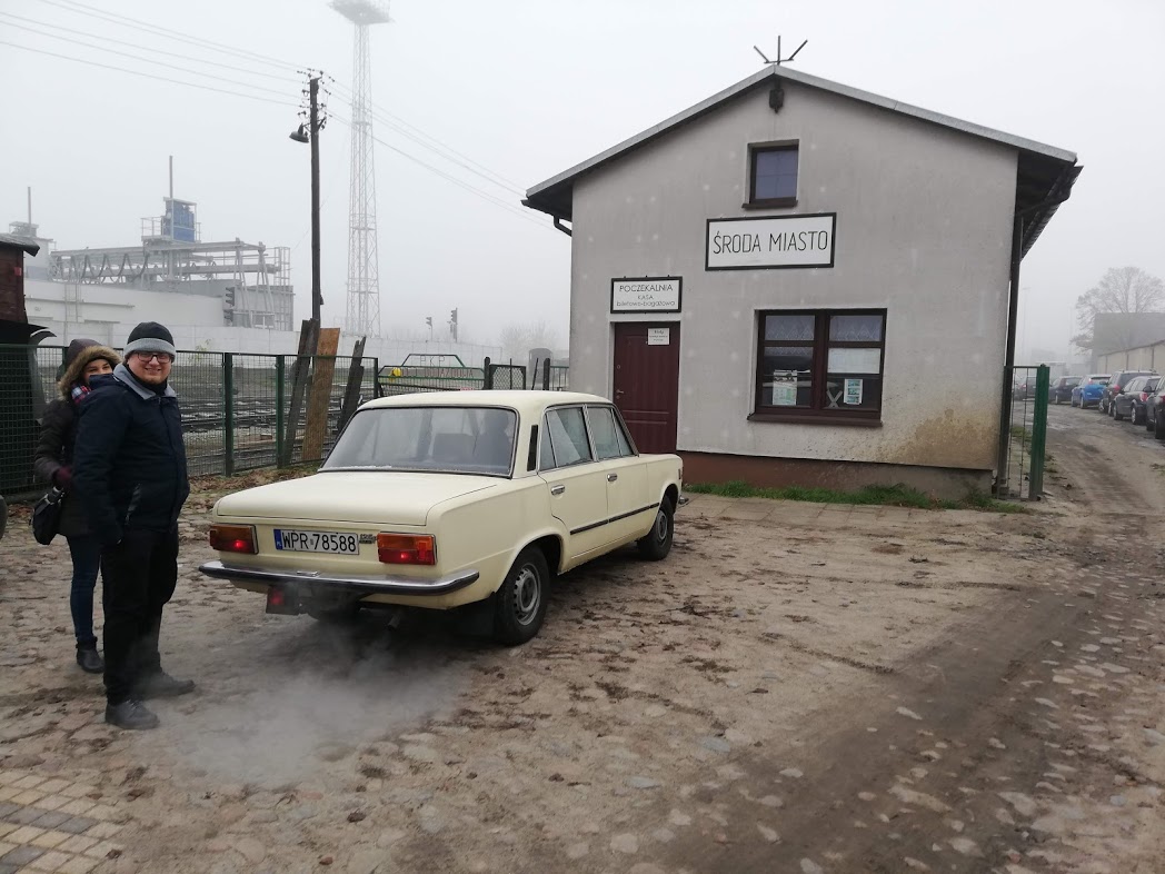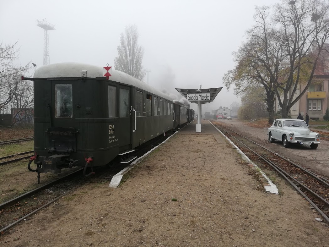 W sobotę rano na stacji Środa Wielkopolska odebrał nas podstawiony idealny duży fiat ( chyba L87 kość słoniowa to najbardziej PRLowki kolor auta…) i szybko dowiózł na stację, gdzie oczekiwał przygotowany skład 2 x 1aw (cieplutkie wagoniki z rozpalonymi piecami węglowymi i 1 brankard).
