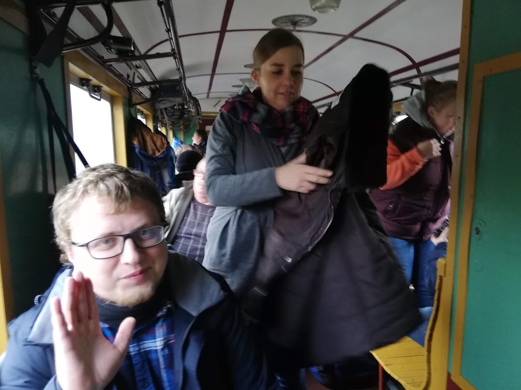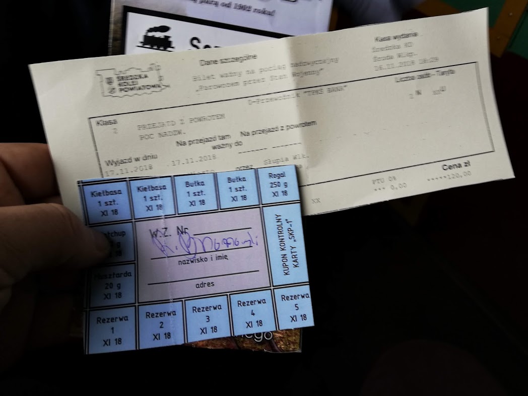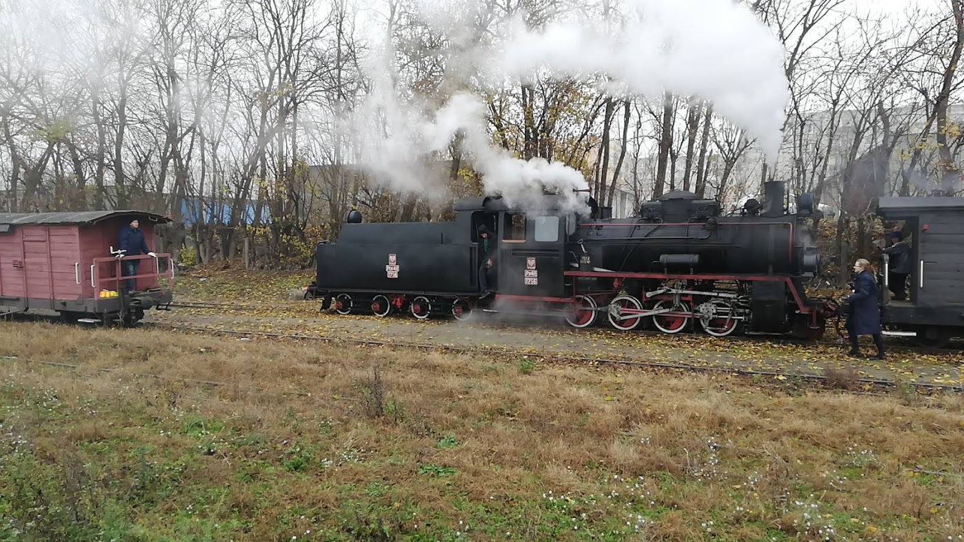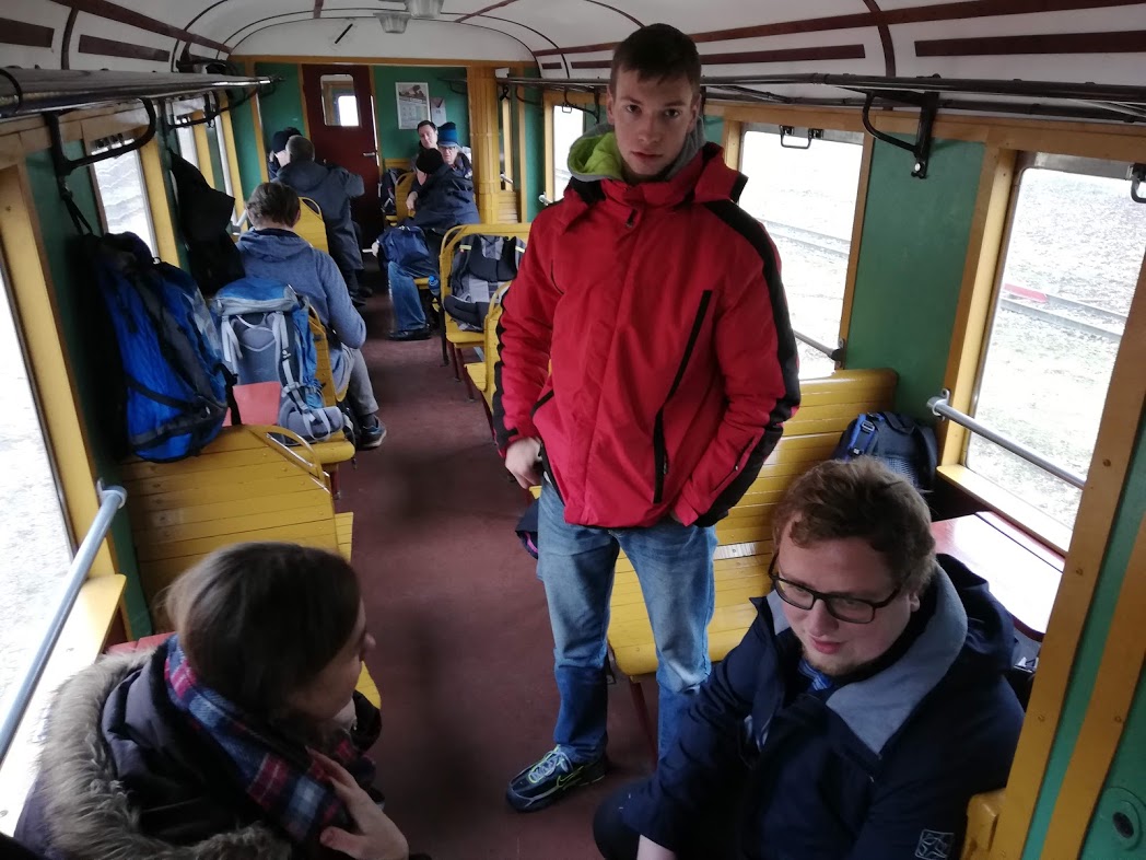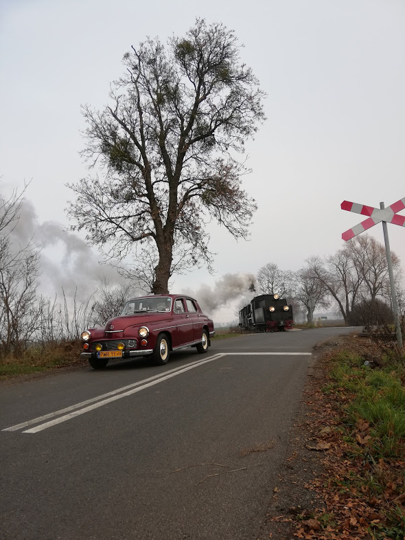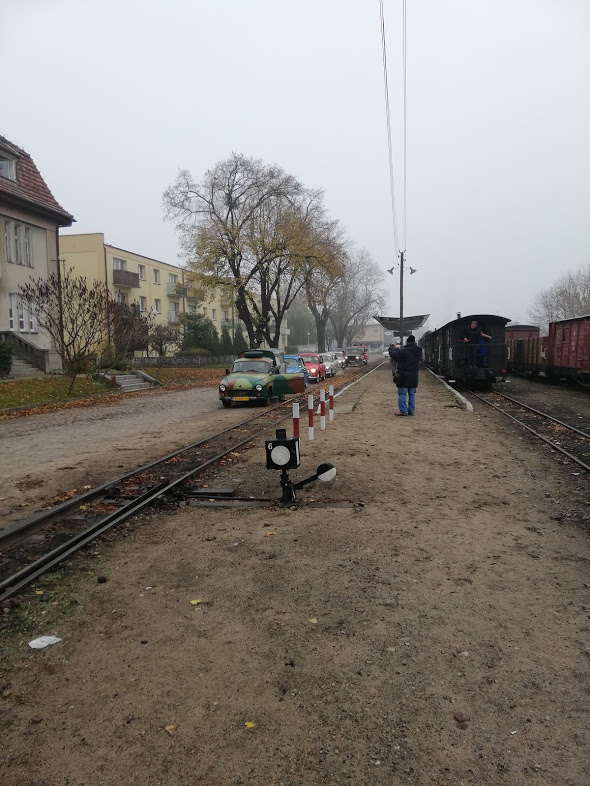 W sobotę rano na stacji Środa Wielkopolska odebrał nas podstawiony idealny duży fiat ( chyba L87 kość słoniowa to najbardziej PRLowki kolor auta…) i szybko dowiózł na stację, gdzie oczekiwał przygotowany skład 2 x 1aw (cieplutkie wagoniki z rozpalonymi piecami węglowymi i 1 brankard).