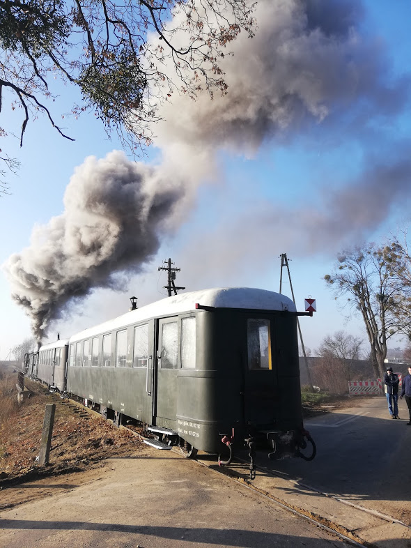 Taki kierunek rozwijania atrakcji uważam za wyśmienity, można się było poczuć jak na planie filmowym. Pasjonaci ze średzkiej kolejki pilnowali nawet aby auta miały czarne tablice. Coś pięknego. Czas szybko leci i zapada zmrok, wysiadamy na stacji środa miasto i gnamy na pociąg do poznania, potem ICC do wwy i KM do Zalesia 23.20.To był bardzo udany dzień. Dziękuję Kasi i Kornelowi za świetny wyjazd.
