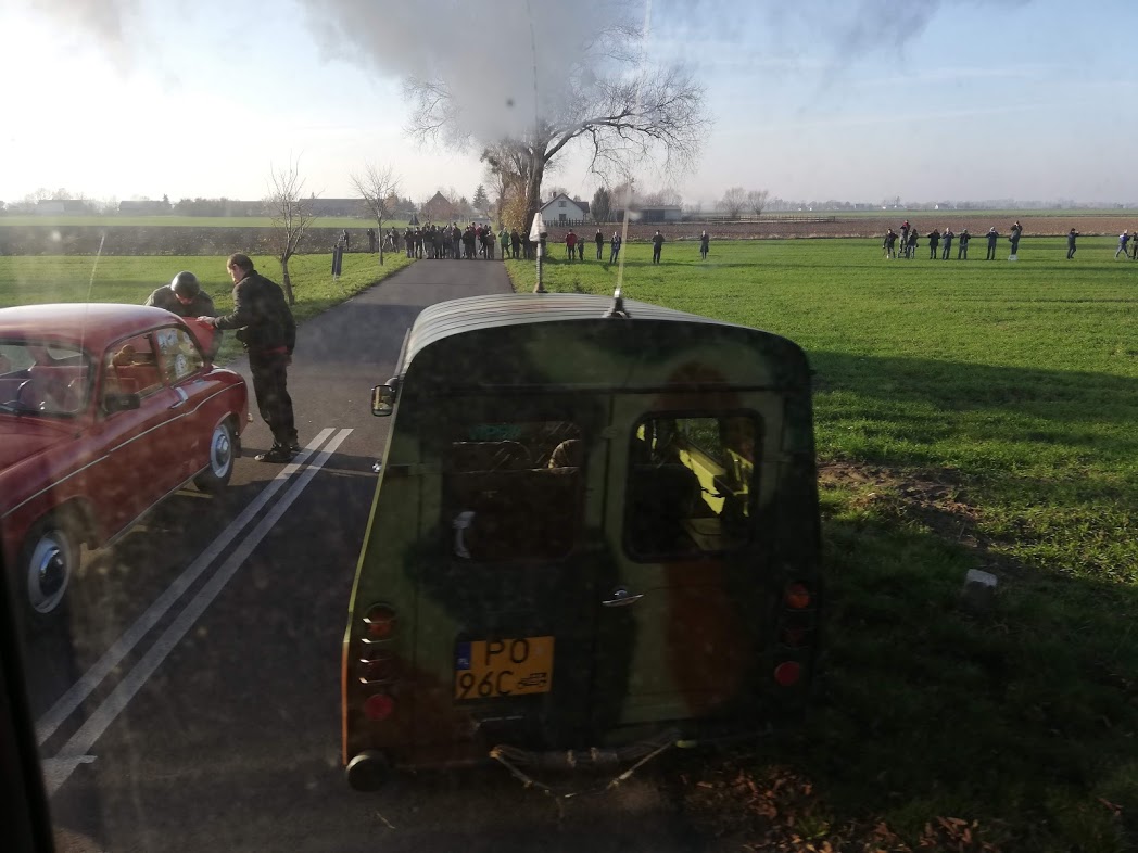 Na kolejnym przystanku nastąpiła wymiana podróżnych, gdzie bardzo elegancka pani w futrze, przesiadła się do Warszawy 223. Było kilka zdjęć w ruchu aut przy szlaku, kontrola wojskowa aut na drodze (w końcu to stan wojenny). Na koniec natomiast ognisko z kiełbasami na kartki i rogaliki marcińskie.