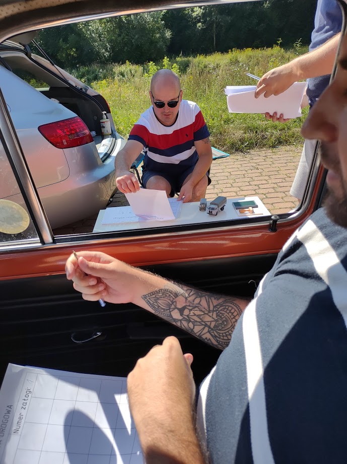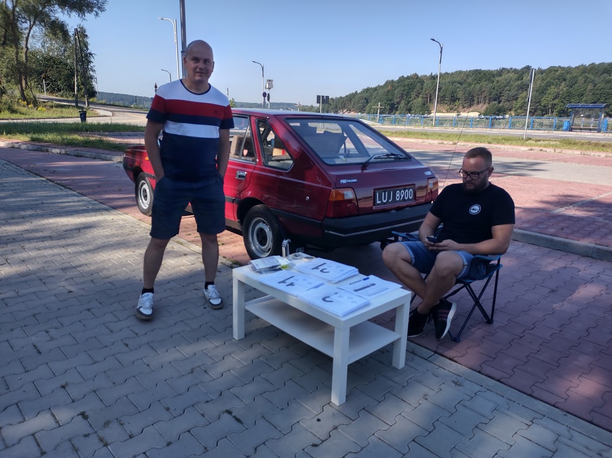Na samym końcu rajdu zastava zdycha, rozbieramy pompę paliwa a tam rozsypane zaworki, które wypadają dodatkowo na asfalt. Po pól godzinnej walce w upale na rozgrzanym asfalcie kapituluję i wzywam na pomoc Michała Kapustę aby nas zholował. Ale w ostatniej chwili udaje mi się pozbierać elementy i odpalić Zochę! Na mecie witają nas oklaskami !!!