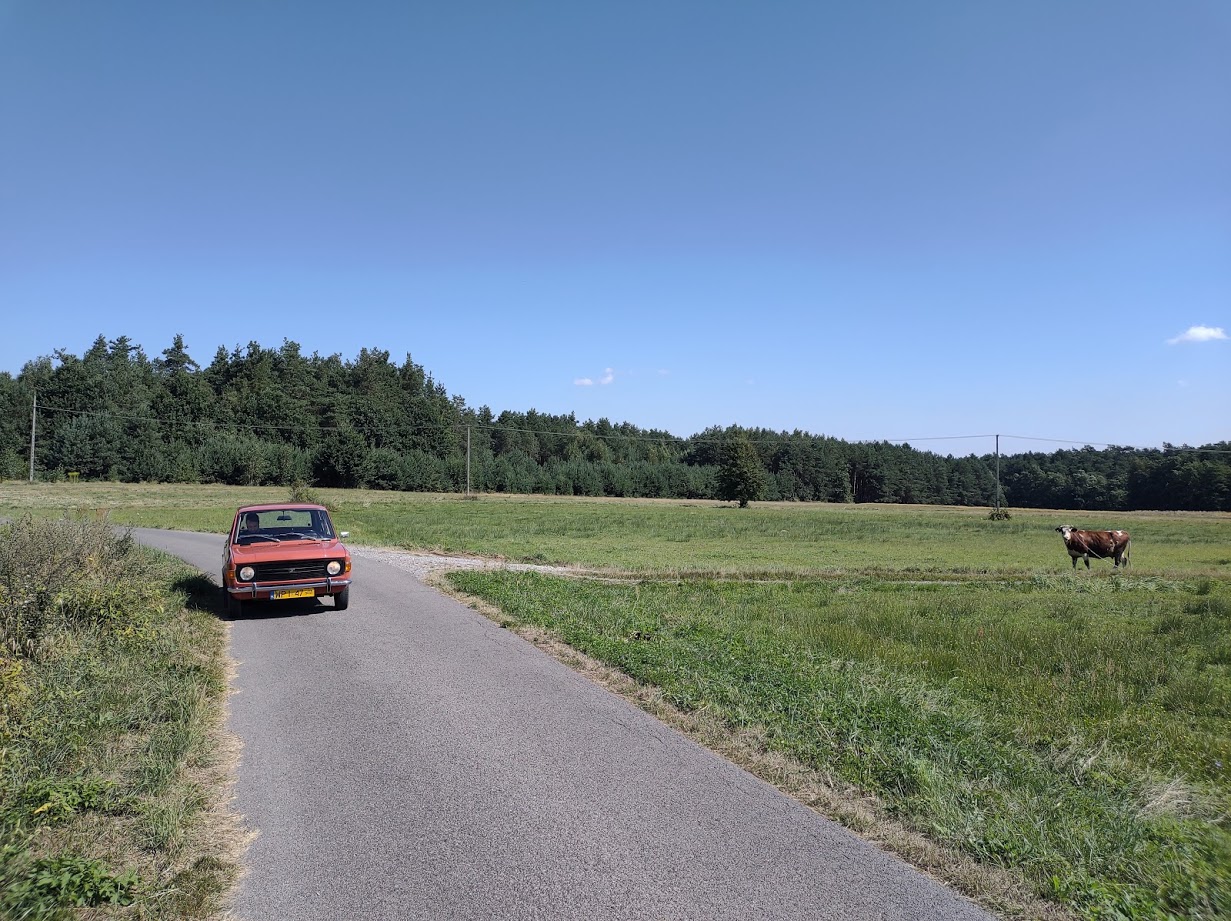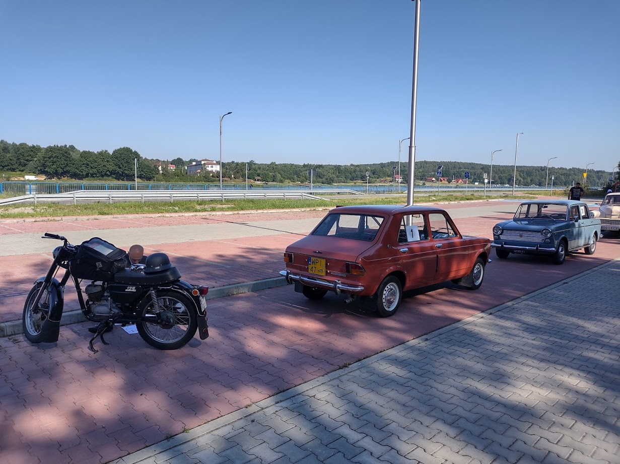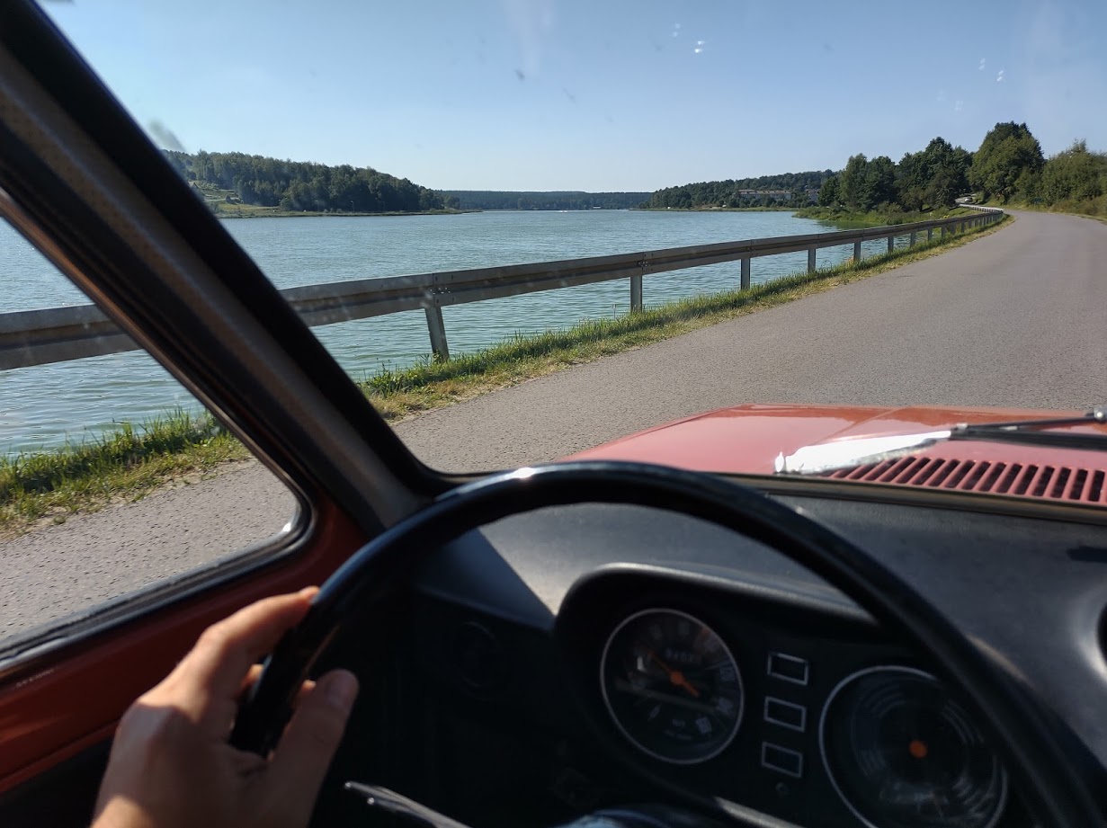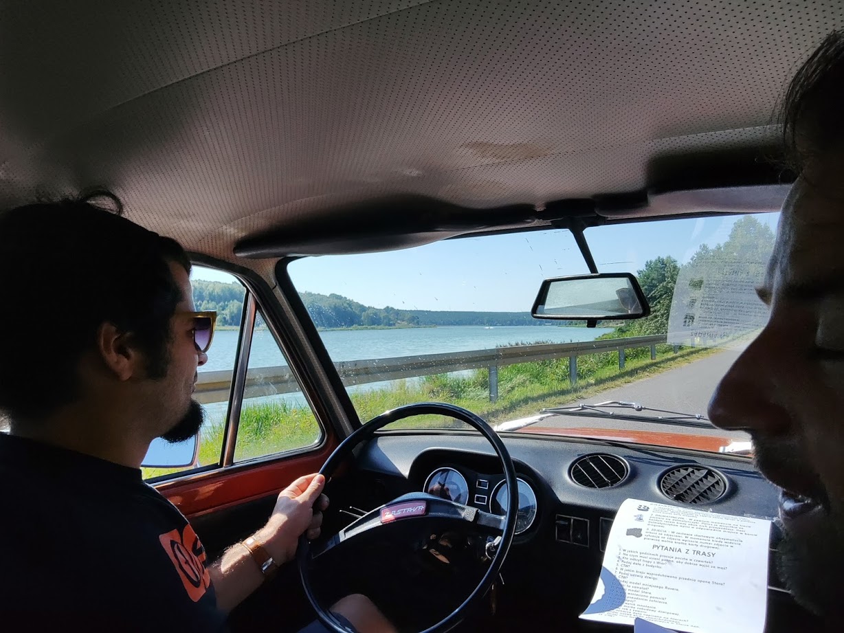 Nocujemy nad zalewem Brody iłżeckie. Odprawa i start! Ależ piękne widoki, okrążamy zalew po prawdziwie górskim terenie. Po drodze pytania o ciężarówki i nie tylko… eh można się było nieco lepiej przygotować z wiedzy ogólnej o starach. Choinka przejechana! sukces. Ale powoli zastava zaczyna szarpać, coś jakby się dusiła.