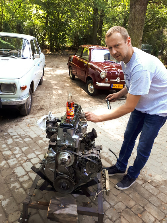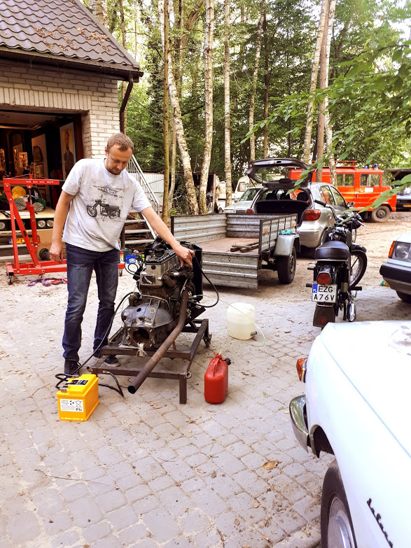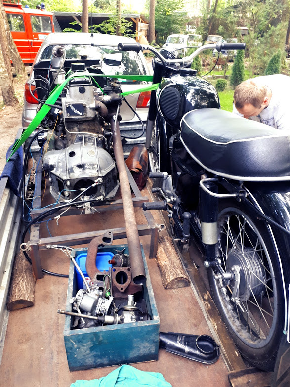 Jeszcze jesienią 2017 planowałem założyć do naszej Warszawy 200 silnik s-21 tzw. górniak. W tym celu zakupiłem nawet pięknego żuka https://zabytkowe-samochody.eu/2018/01/01/zuk-jest-krolem/ Lecz żal by go było rozbierać, wiec na giełdzie FB zakupiłem silnik z rzekomo niskim przebiegiem 18 000 km. Co jednak okazało się oszustwem bo miał on zapewne bliżej 80 000 km. Zapadała decyzja o szybkim przeglądzie i tym samym Paderewsku wyremontował całą głowicę, wykonał frezowanie gniazd, dał nowe pierścienie, nowe korbowody, panewki, pierścienie oporowe, szklanki popychaczy, laskę popychacza, koło rozrządu, termostat. Po komisyjnym odpaleniu silnik spoczął w magazynie ( my jednak do warszawy włożymy m20, który też jest u Paderewskiego). bo może nam się jakaś nysa jeszcze trafi? Silnik był z dostawą do domu, bo Paweł jechał na zlot motocykli sokół. Zlot udany a miejsce rajdzie zajął 4 ! brawo 😉