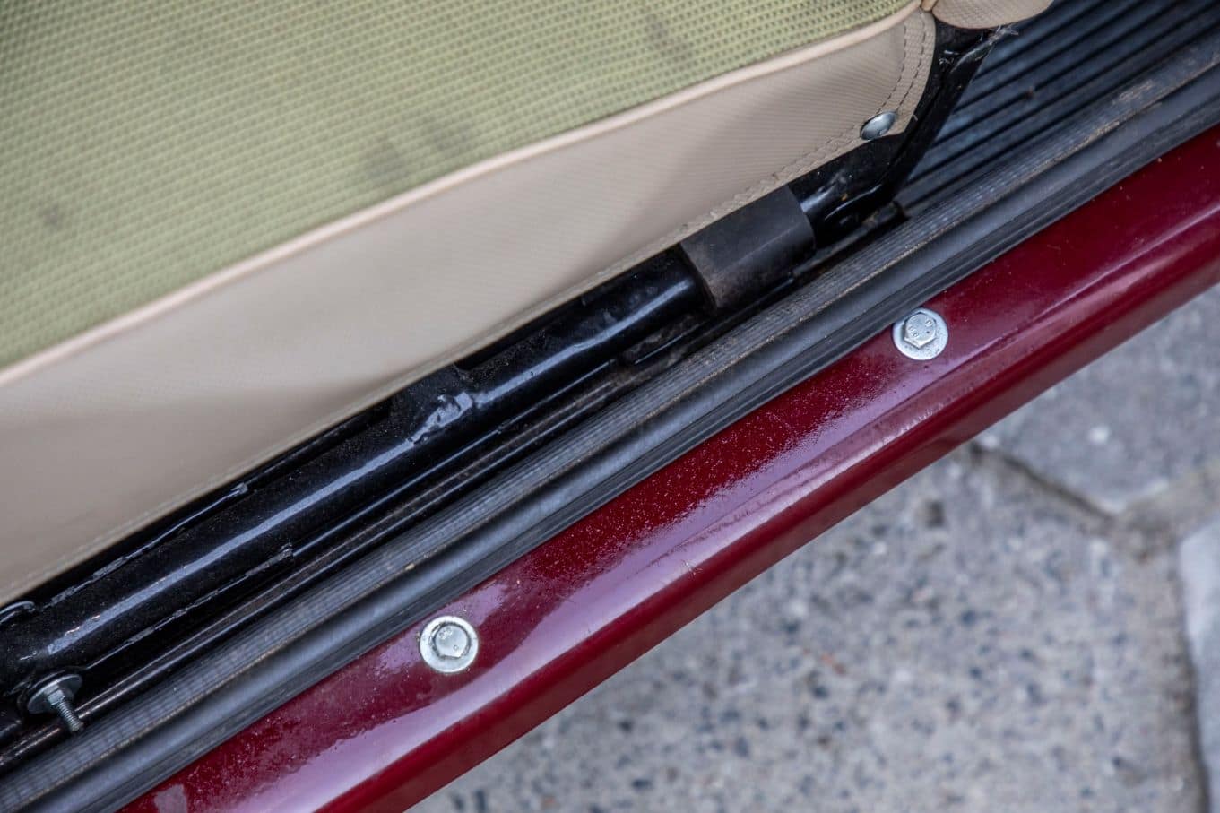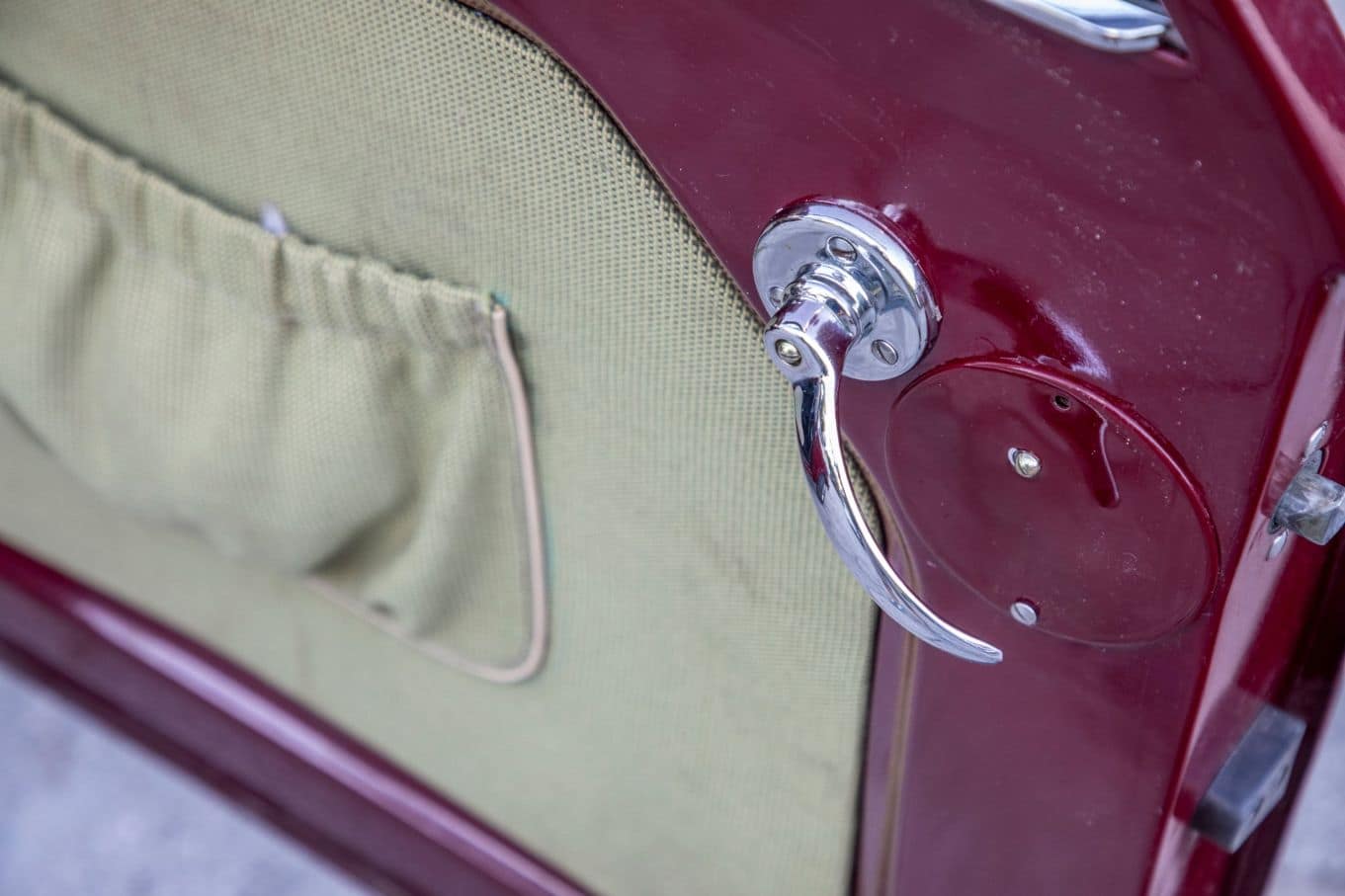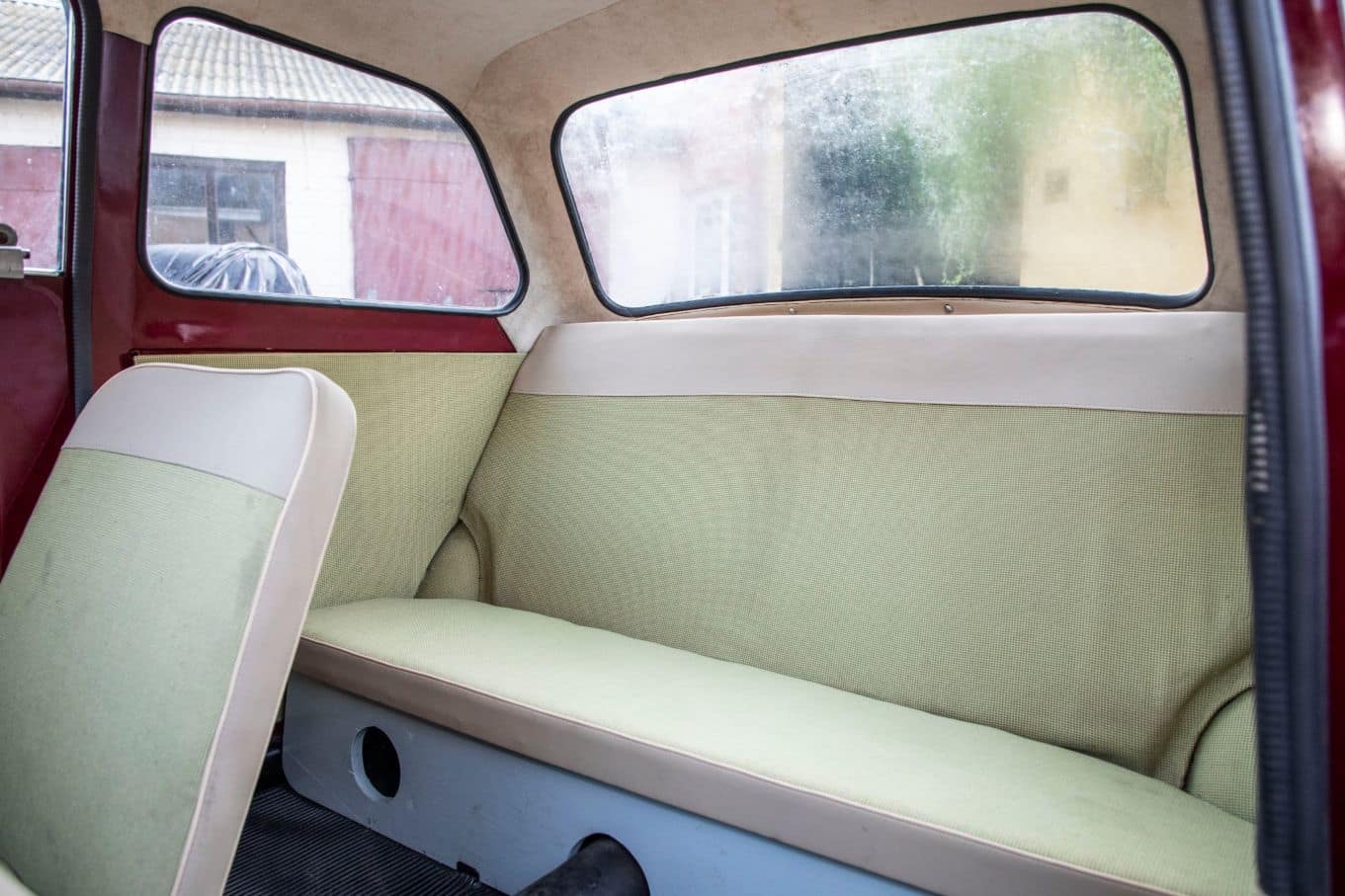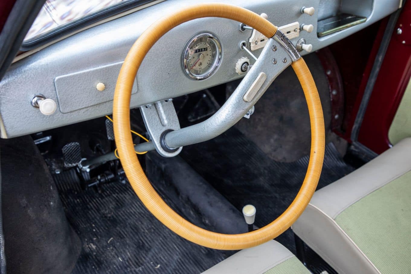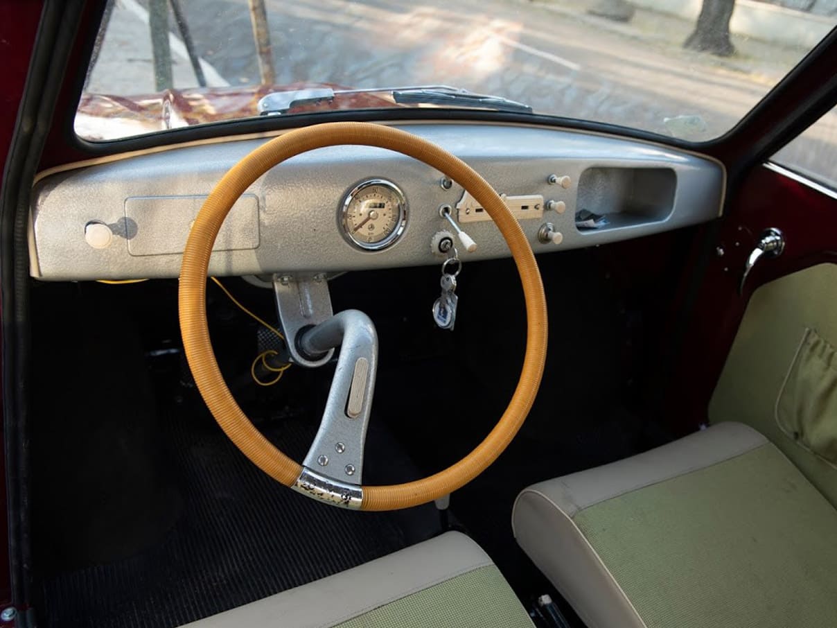 Tapicerka wykonana zgodnie z duchem epoki, choć grubej tłoczonej w skaju kraty nie ma już w ofercie żadna hurtownia. Pojazd w bardzo dobrej kondycji. Sprawny gotowy do drogi.