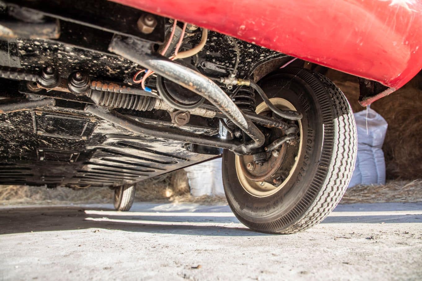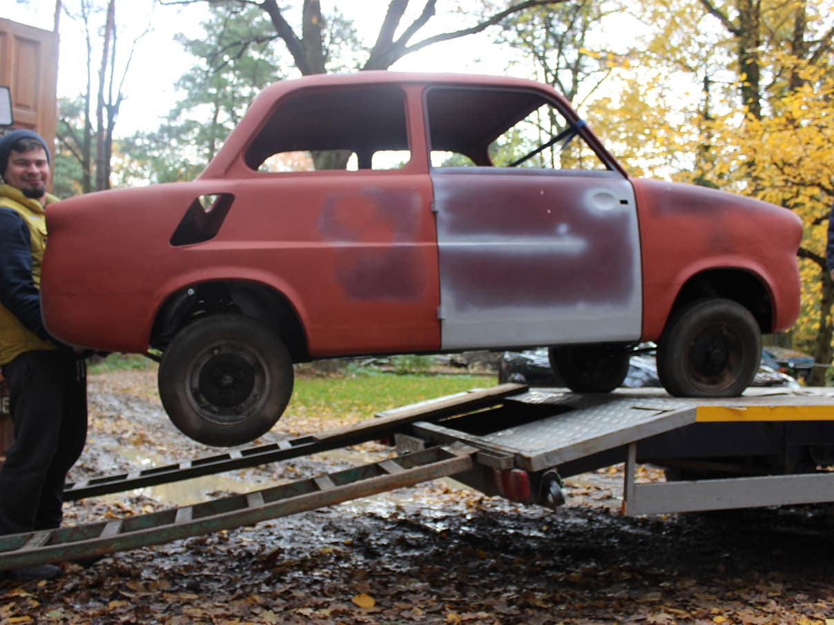 Płyta podłogowa została oddzielnie przygotowana. Mikrus dostał nowe hamulce, przewody, krzyżaki na półosiach napędowych.