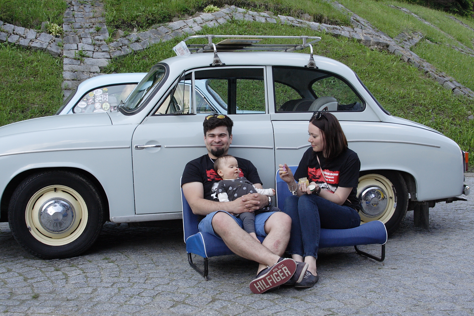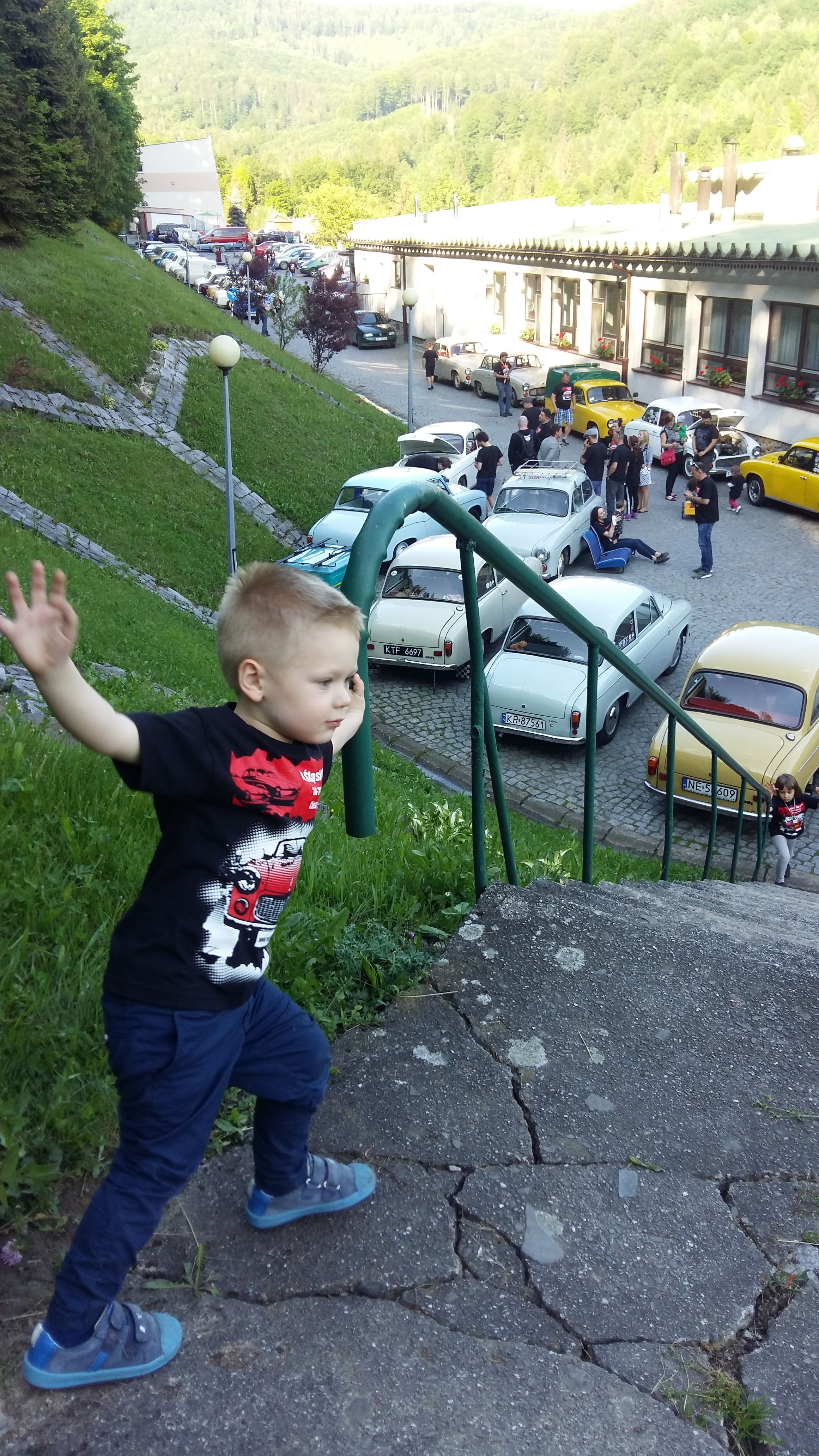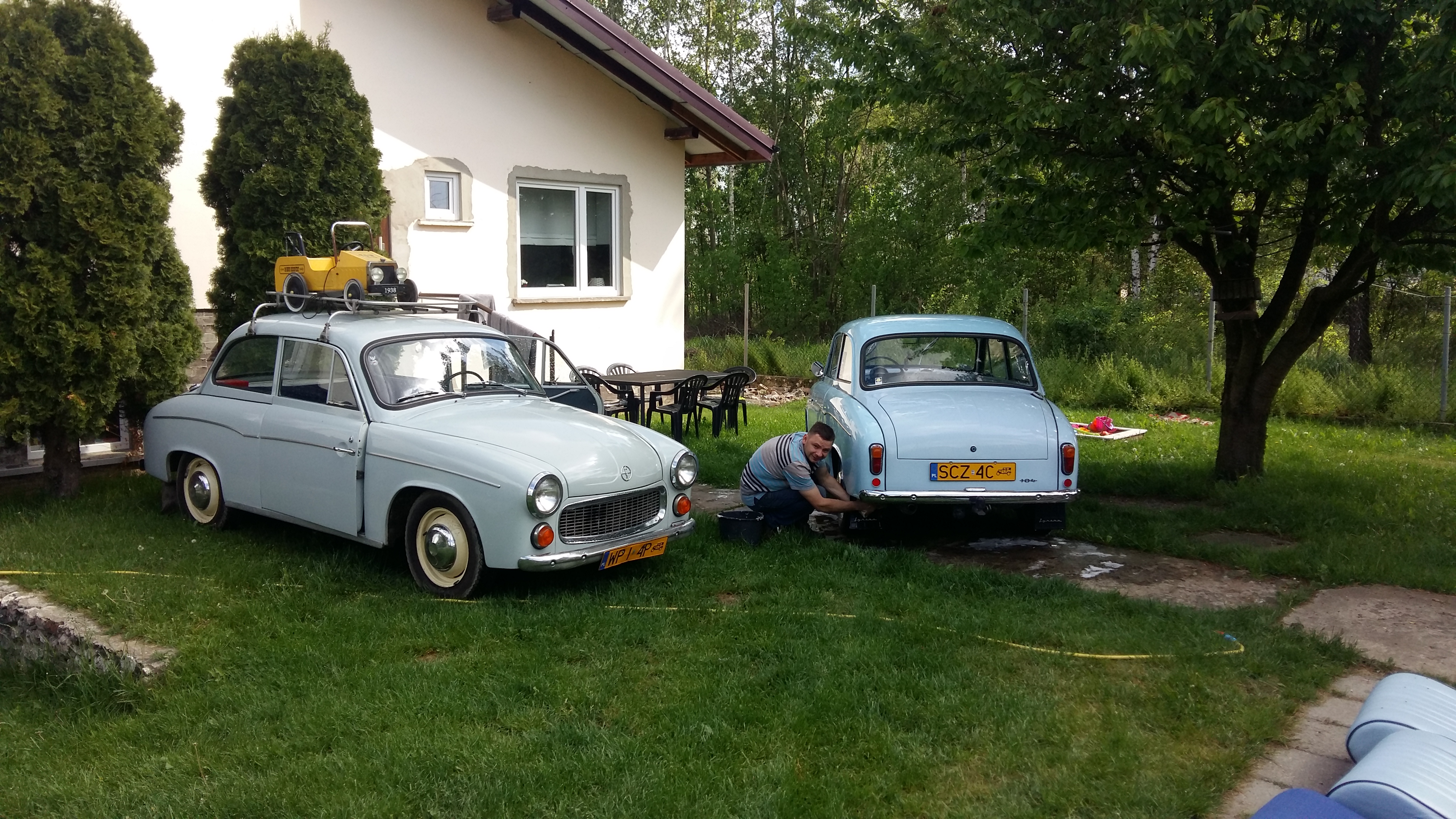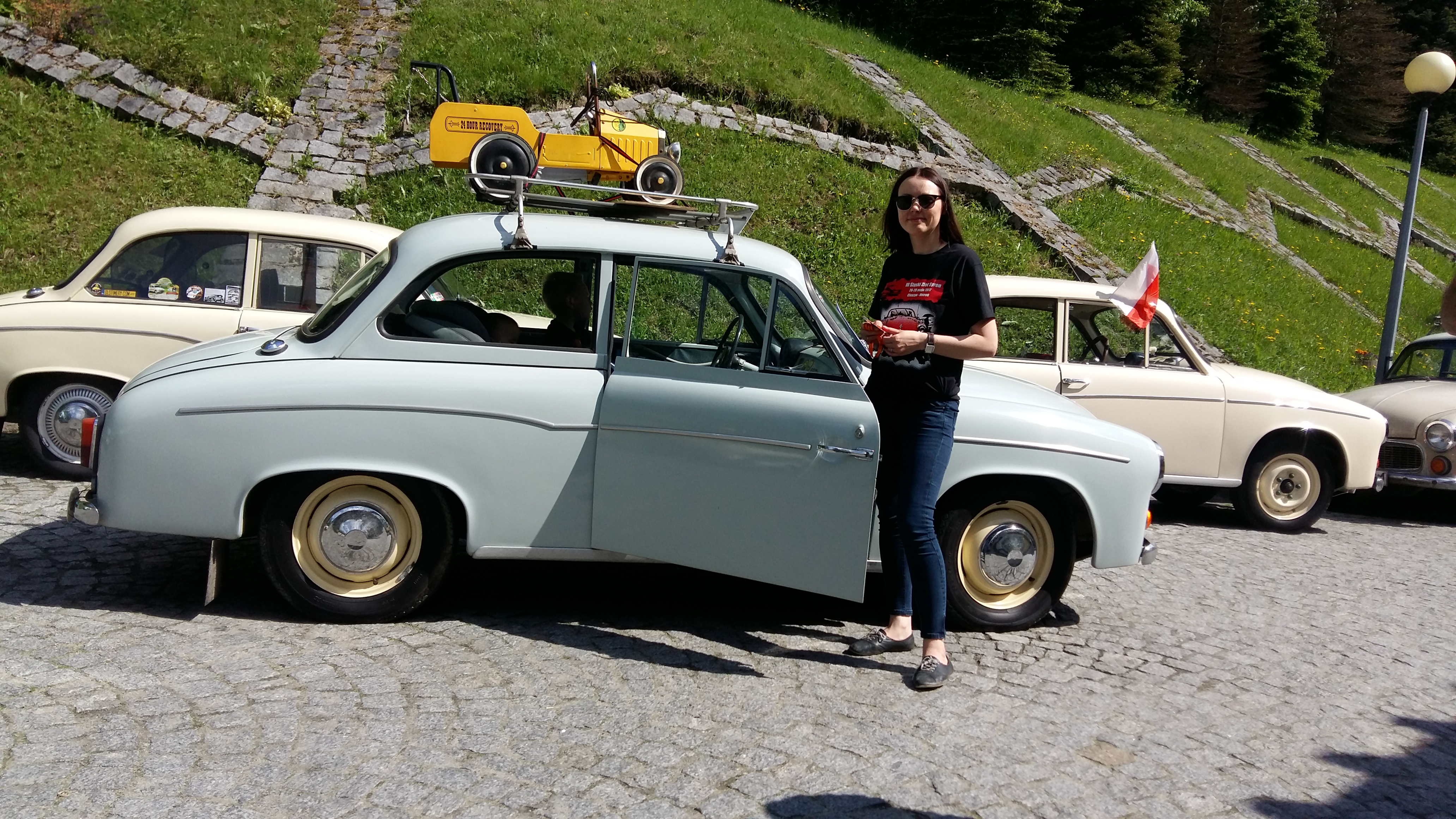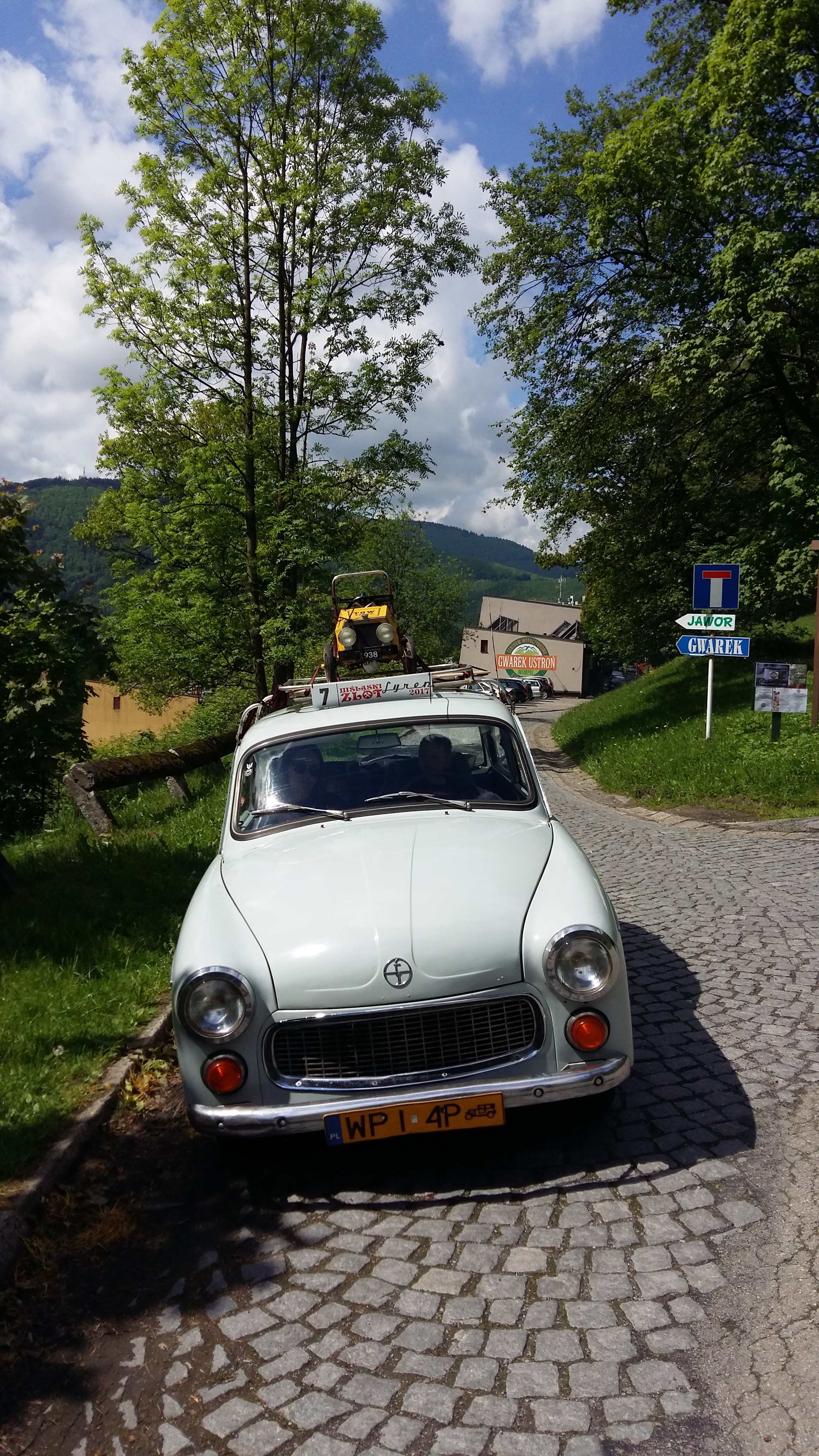Odległość do Ustronia, gdzie miała miejsce baza zlotu była dość znaczna. Dlatego wyjazd podzieliliśmy na 2 etapy. Tak więc 1 przystanek mieliśmy w Kusiętach k/Częstochowy gdzie przyjęła nas Jowita z Pawłem. Aby na drugi dzień wspólnie pojechać na zlot, po drodze odwiedzając Tychy i garaż z rupieciami Jogurta.