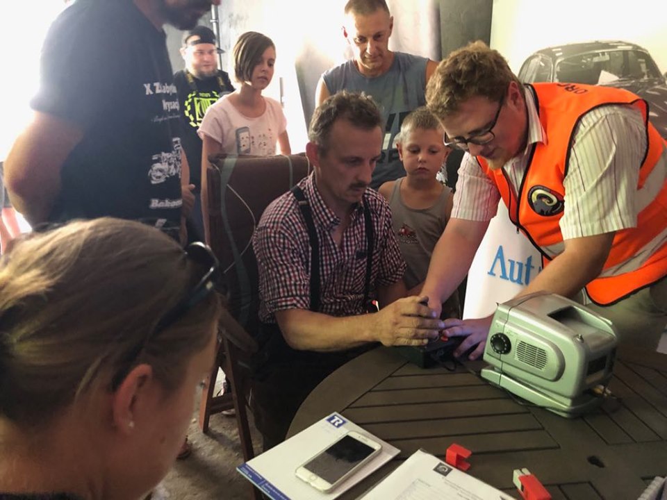 Następnie zawodnicy ruszyli do 2 etapu, gdzie czekały na nich kolejne pytania oraz kontrola chłopców radarowców w policyjnym polonezie ( szczególne podziękowania dla dyrektora Tomka i starszego kustosza Rysia z Muzeum Motoryzacji i Techniki w Piastowie www.radiowozy.pl). Kiedy zawodnicy dojechali do zalesia dolnego, to odwiedzili dom Tadeusza Zawadzkiego “Zośki”. Następnie odbyła się próba Atari, czyli gra asteroids na czas! Cały sprzęt udostępnił Bodzio. FLASHBACK KONSOLE BODZIO Niestety ze względów rodzinnych musiał opuścić próbę godzinę przed przyjazdem pierwszej załogi i o mały włos by jej wcale nie było. Na szczęście z pomocą przybył Kornel wraz z Kasią, którzy w asyście Uli ogarnęli tę próbę w siedzibie Automobilklubu Piaseczyńskiego za co im serdecznie dziękuję ( choć koordynując to trochę się strachu najadłem. A chyba wszystkim przypadła ona do gustu(mimo,że musieli odczekać do niej dłuższą chwilę w kolejce). Niestety tutaj zrobiliśmy błąd i na km 64 kratka powinna nas kierować w prawo a kierowała na wprost( problem zgłosiła mi załoga nr 2 i wszystkie kolejne były już informowane o tym na punkcie atari – dodatkowo była informacja na FB) no cóż, przepraszamy, najlepszym się zdarza 🙂 W tej okolicy uszkodzeniu uległ Autosan, koledzy już mieli zrezygnować z rajdu, ale podniosłem ich na duchu i zasugerowałem aby ukończyli rajd swoim polonezem i wrócili do gry!- to się nazywa wola walki, gratuluję.