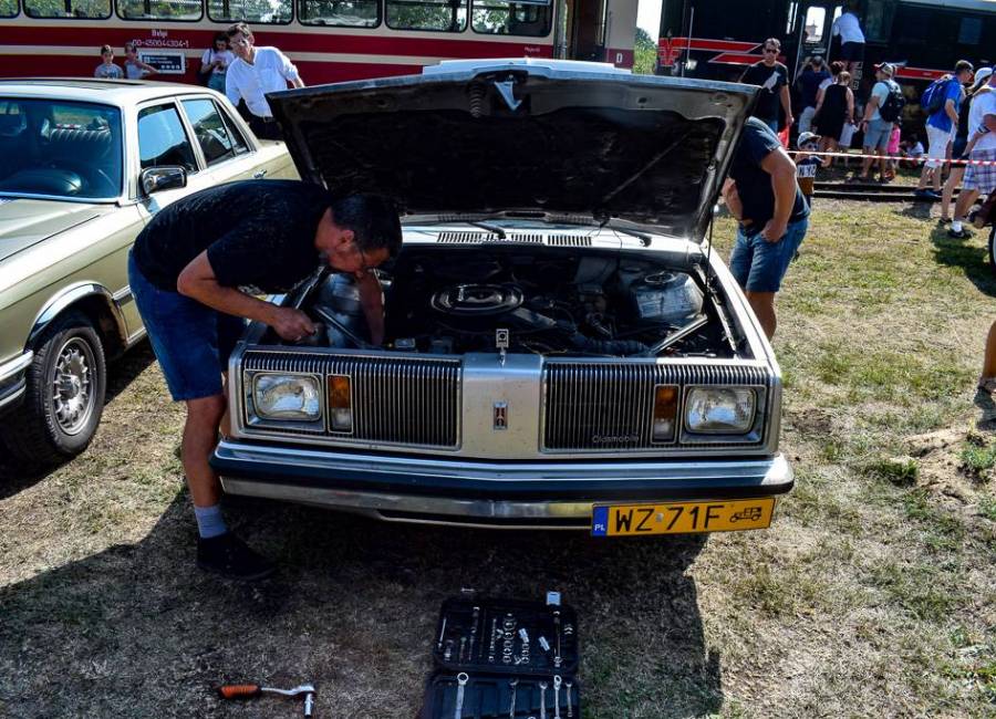 Tutaj Fruncowi w Oldsmobilu poszedł pasek klinowy, zaproponowałem że jak nie naprawi to dam mu tatowego poloneza. Chyba to go zmotywowało aby za wszelka ceneę jednak naprawić własny wóz i ruszył nim dalej.