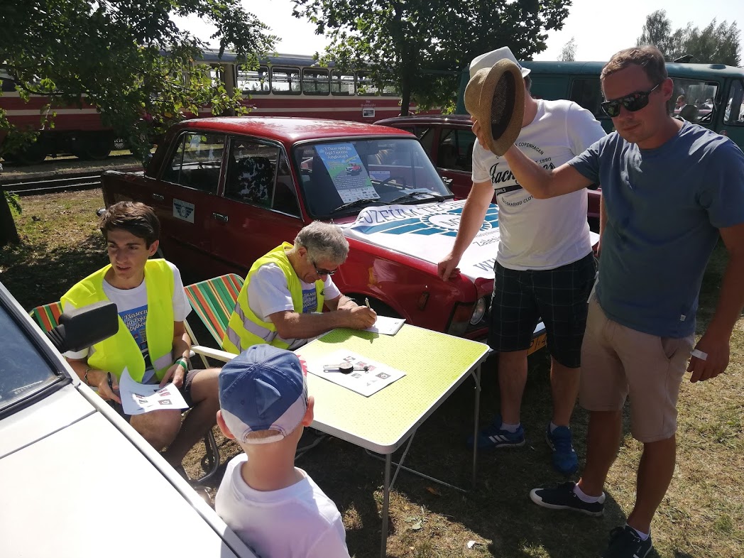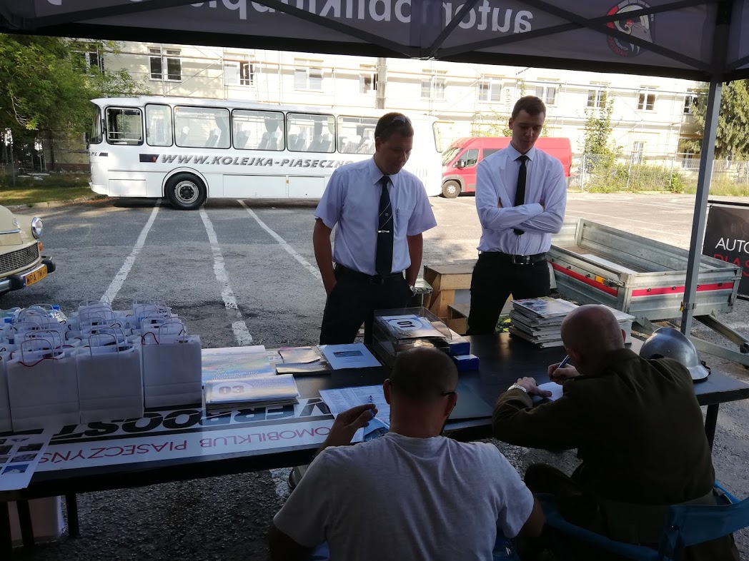 W niedzielny poranek spotkaliśmy się na pl.piechoty w Górze Kalwarii, skąd odbywał się start załóg. Pierwsi w biurze pojawili się przedstawiciele Piaseczyńskiej Kolei Wąskotorowej w zastępczym pojeździe Autosan H9. Zapisy przebiegły sprawnie dzięki zaangażowaniu Asi, Jarka i Łukasza. Po odprawie zawodnicy ruszali na trasę rajdu. Po drodze należało odnaleźć liczne zdjęcia z trasy oraz odpowiedzieć na pytania.